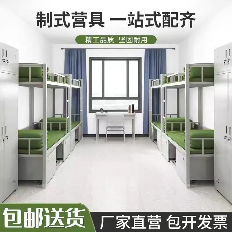 加厚营具宿舍上下铺双层床士兵柜单人床军官内务柜更衣柜学习桌椅 - 宏源办公家具