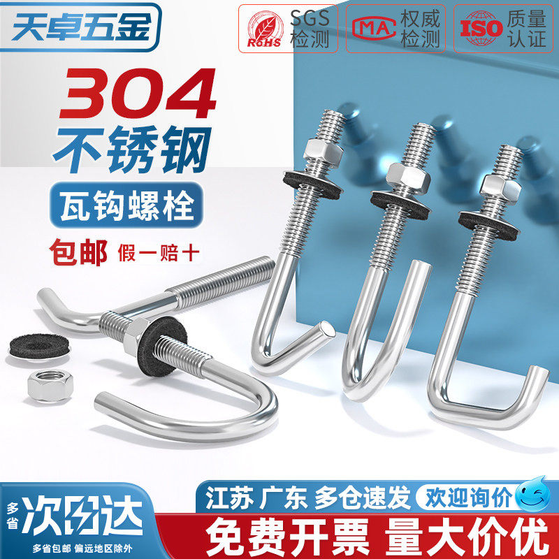 304不锈钢石棉瓦钩方钩 异型螺丝钉 圆钩挂钩直角钩螺栓瓦楞钩钉 - 天卓五金官方旗舰店