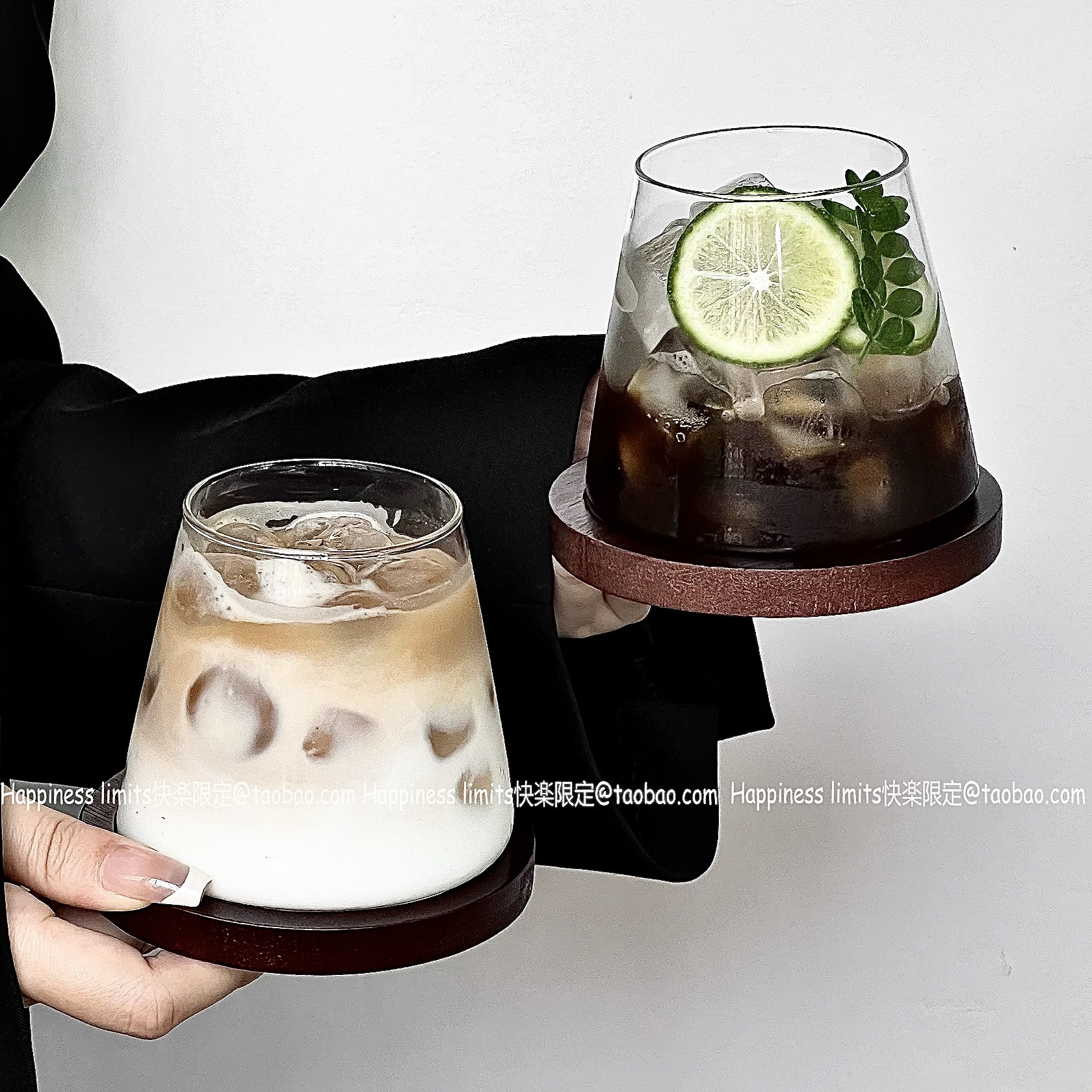 日式富士山杯玻璃杯ins风冰美式拿铁咖啡杯家用冷饮杯饮料杯水杯 - Happiness limits快楽限定