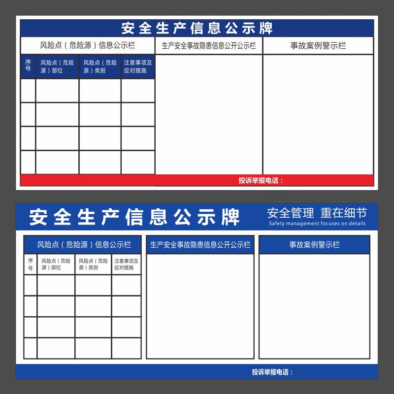 您的位置:光电产业平台  >  安防  >  安全生产信息公示牌标志标识贴事故隐患风险点案例注意事项警示墙