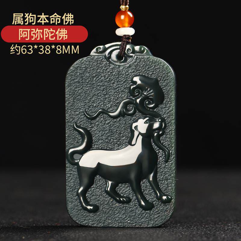 新疆和田玉塔青玉十二生肖守护神本命佛玉佩牌吊坠挂架双面精雕 - 如意宝殿