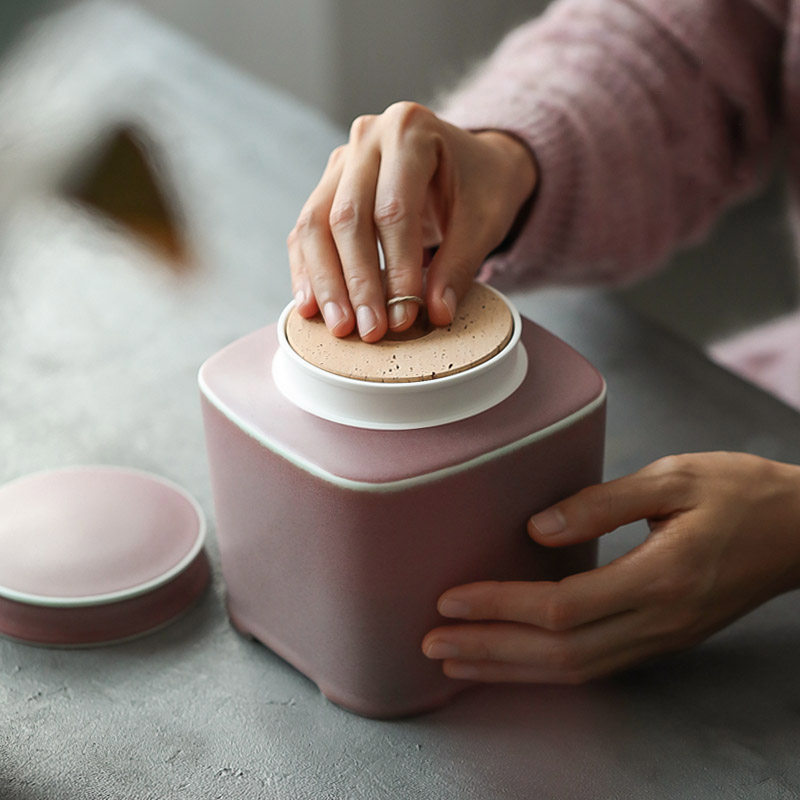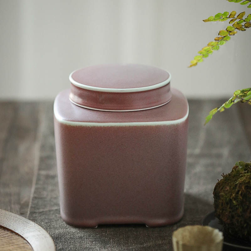 陶瓷双盖软木密封罐半哑光磨砂绛紫茶叶罐包邮新品中式 闲趣别院 - 闲趣别院