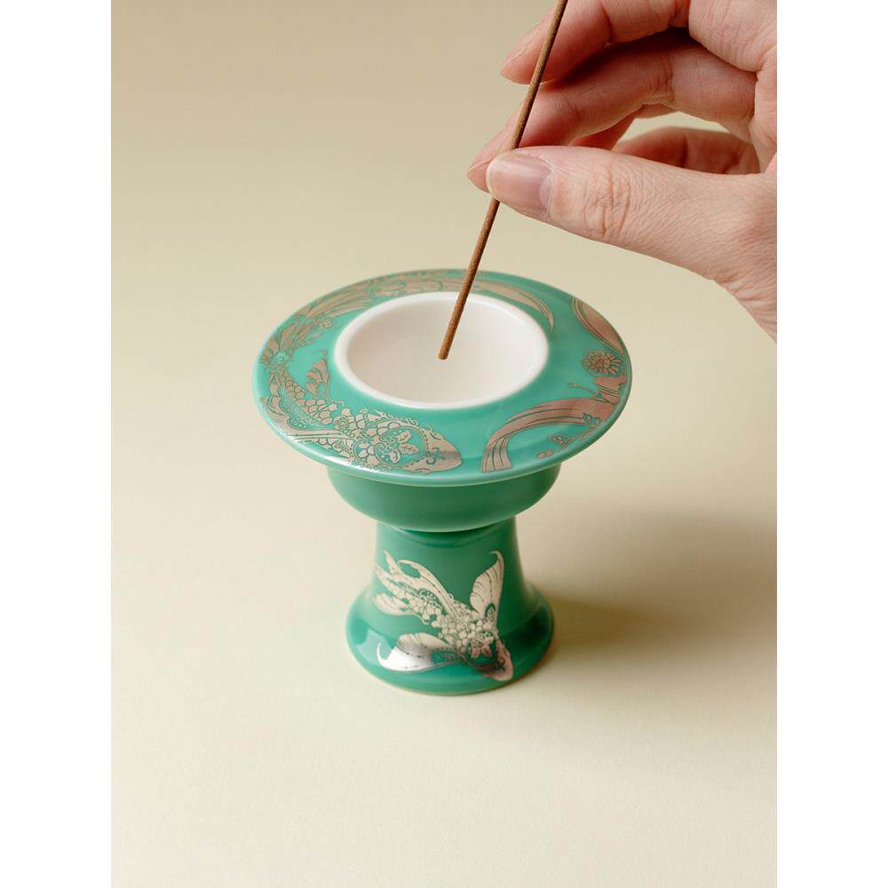 雕刻绿松石银鱼陶瓷香炉禅高端线香炉香沉香饰品 - tb662426123029