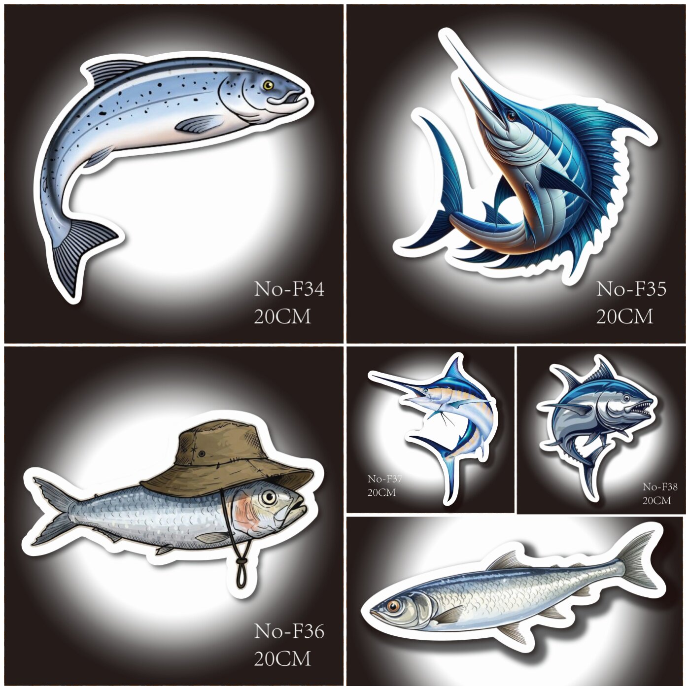 钓鱼主题贴纸鱼类防水行李箱渔具鱼箱车贴贴纸20CM装饰贴多款可选 - 关滋秋旗舰店