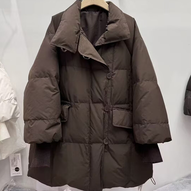 2025冬天新款立领中长款羽绒服女加厚保暖90白鸭绒外套高级感外套 - 杭州四季青女装批发零售一手货源