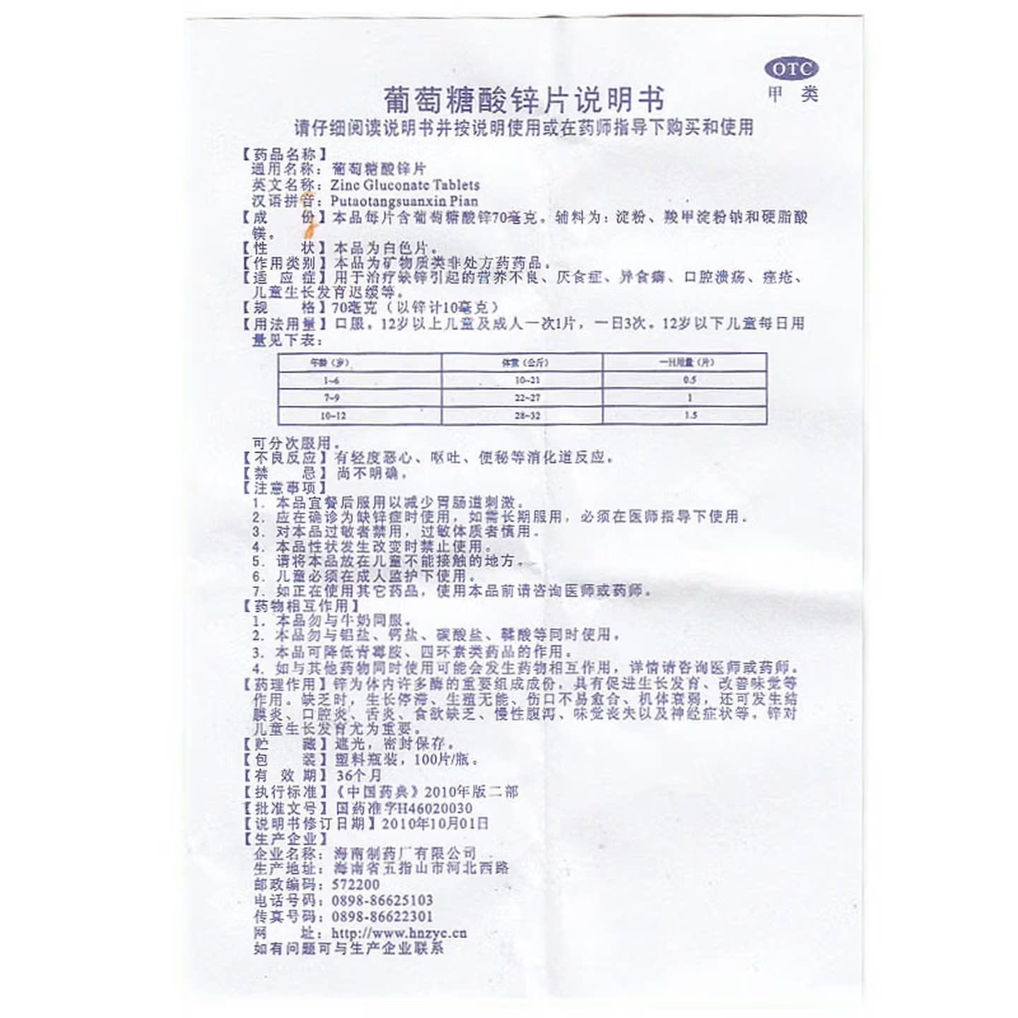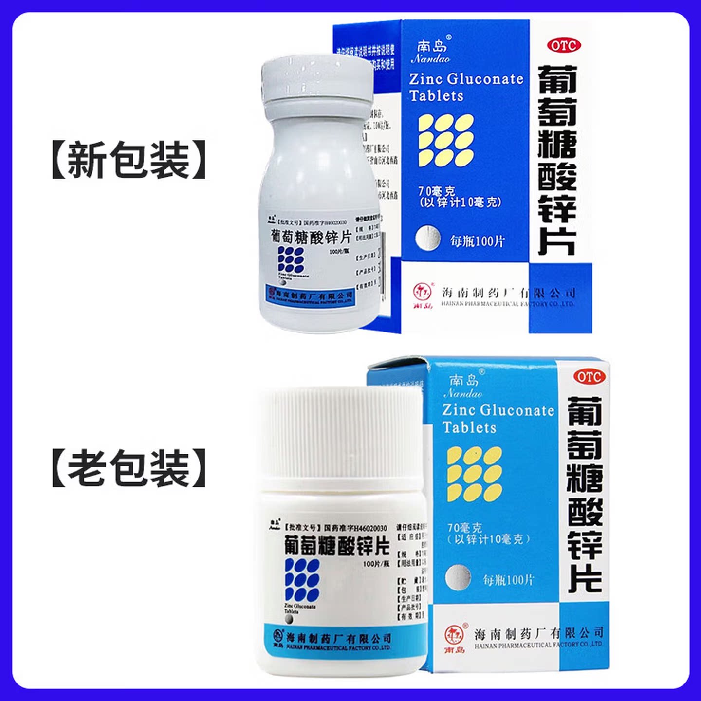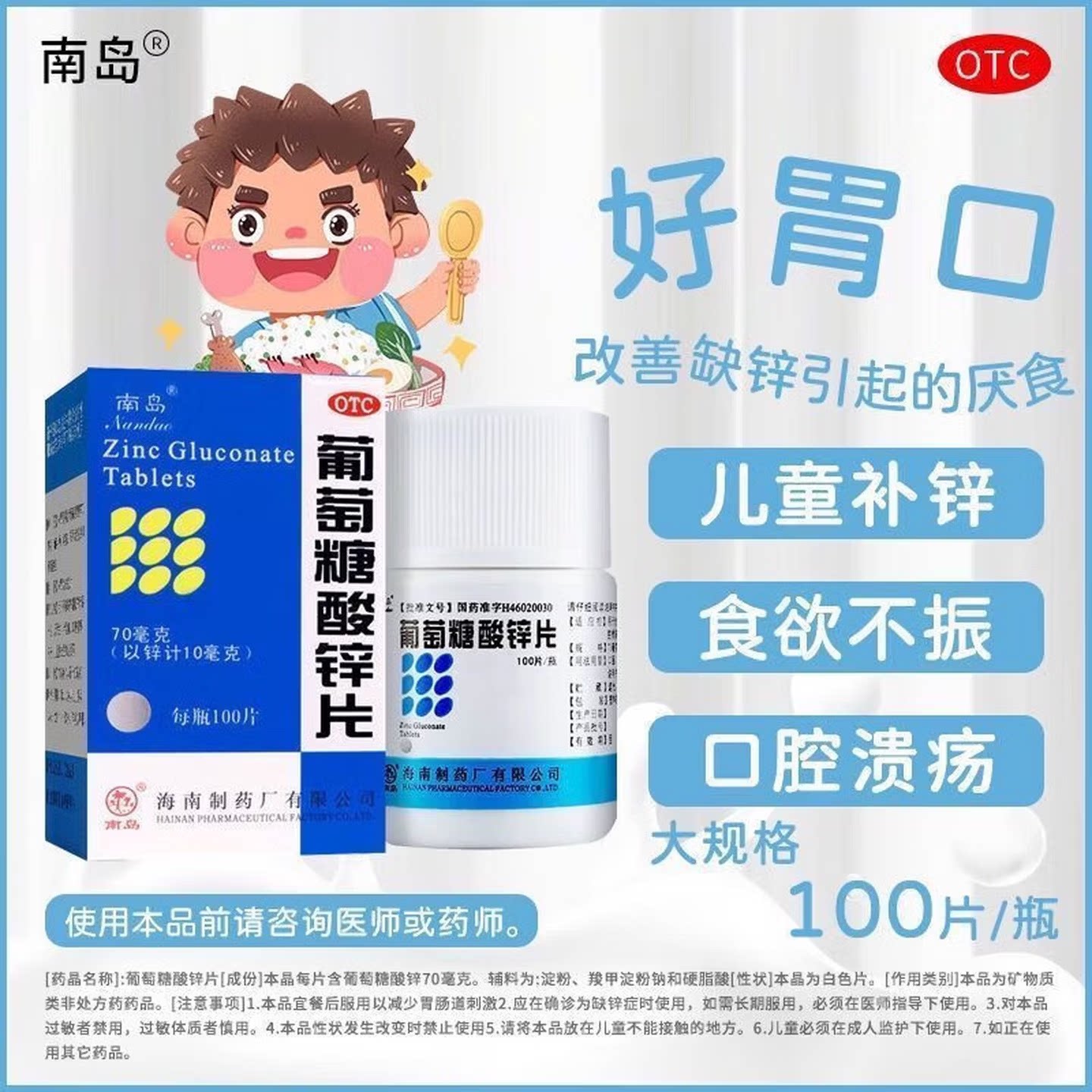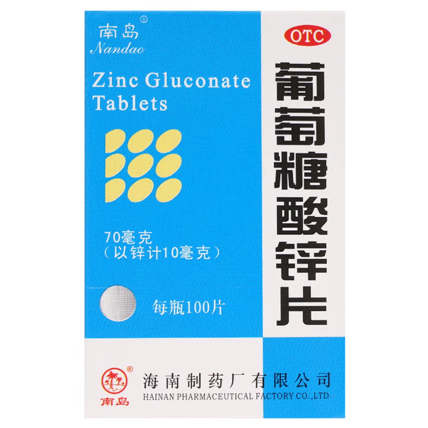南岛 葡萄糖酸锌片70mg*100片 生长发育迟缓营养不良厌食症痤疮 - 百草智慧医药专营店