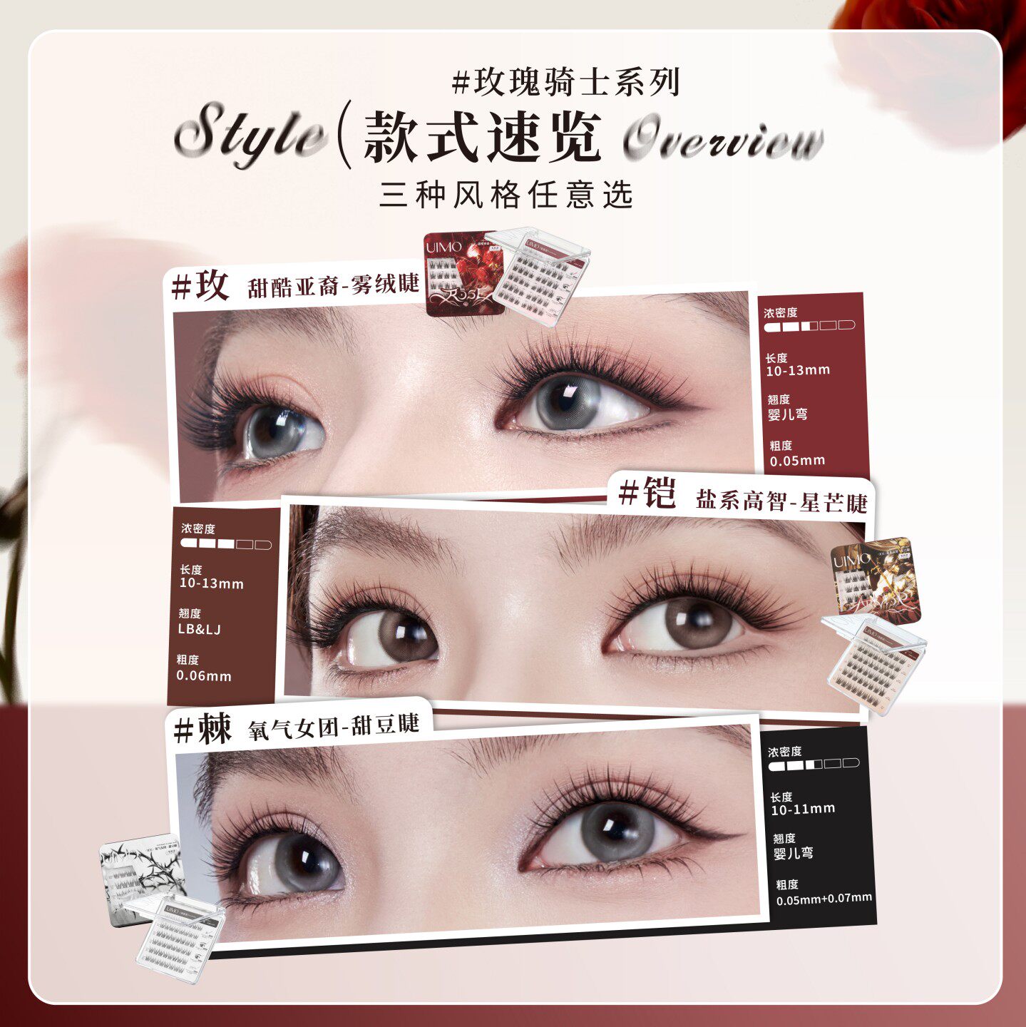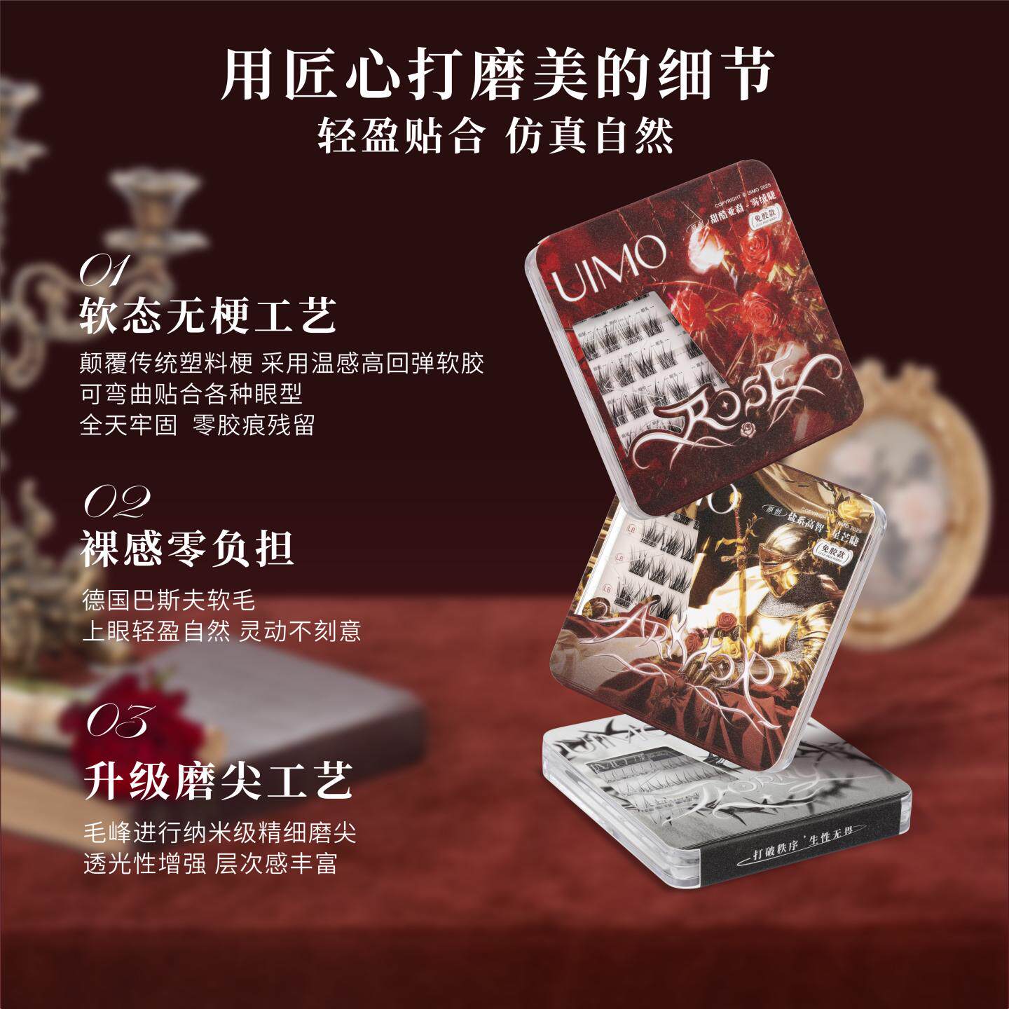 UIMO玫瑰骑士上镜免胶假睫毛2026热卖系韩系亚裔空气感狐系眼睫毛 - UIMO旗舰店