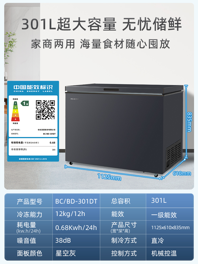 MeiLing/美菱 BC/BD-301DT单温冷藏冷冻节能大容量家商用冷柜卧式 - 冰箱冷柜企业店