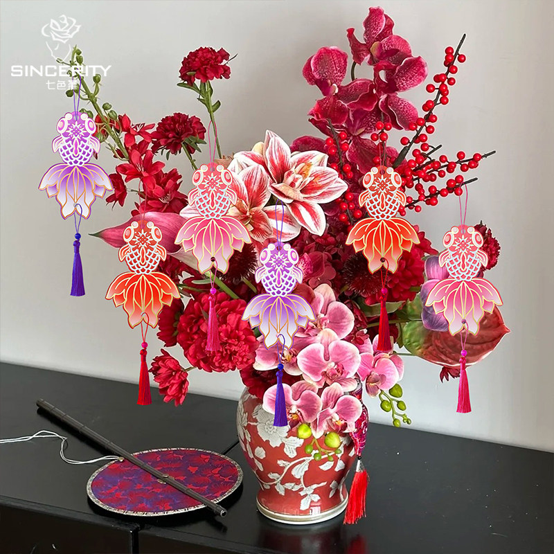 七色堇国潮锦鲤烫金挂饰卡片年宵卡片卡纸DIY花束卡片纸鲜花包装 - 七色堇鲜花包装资材批发