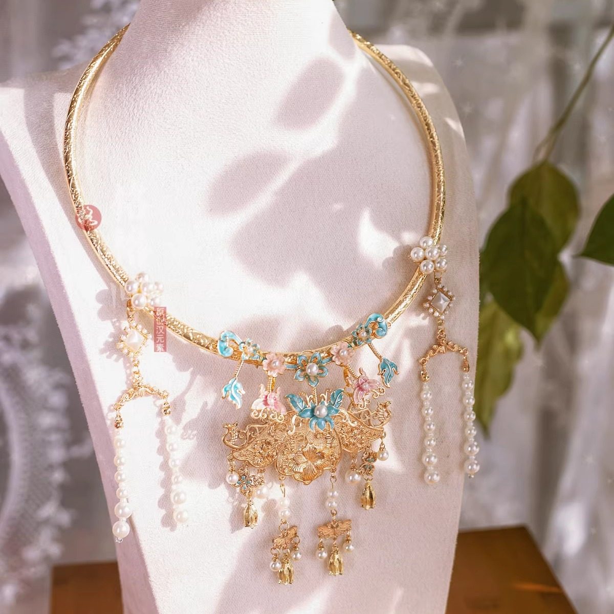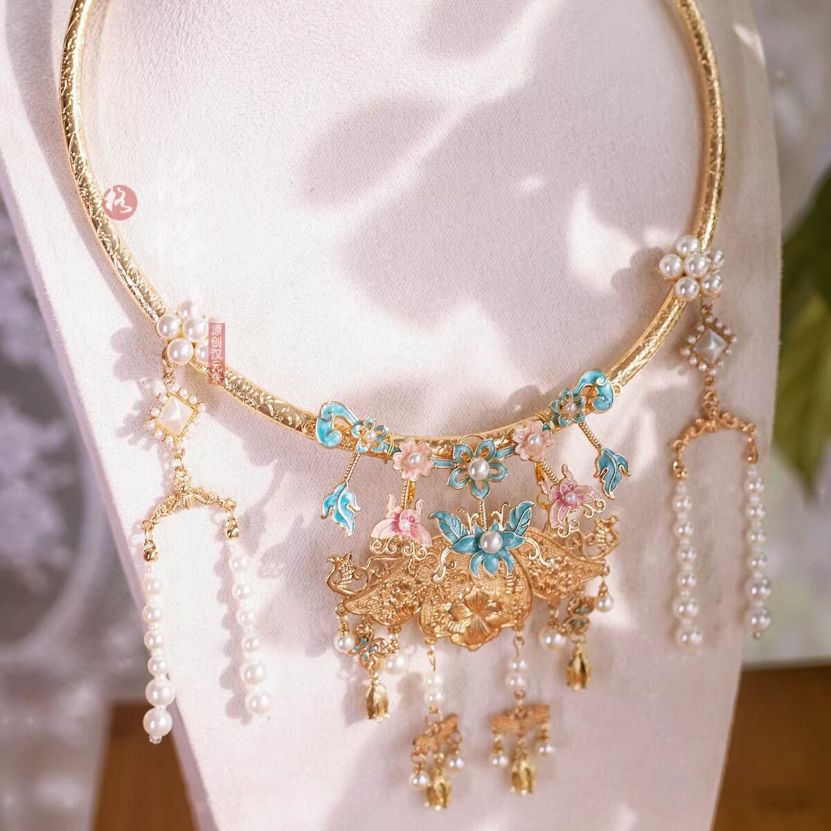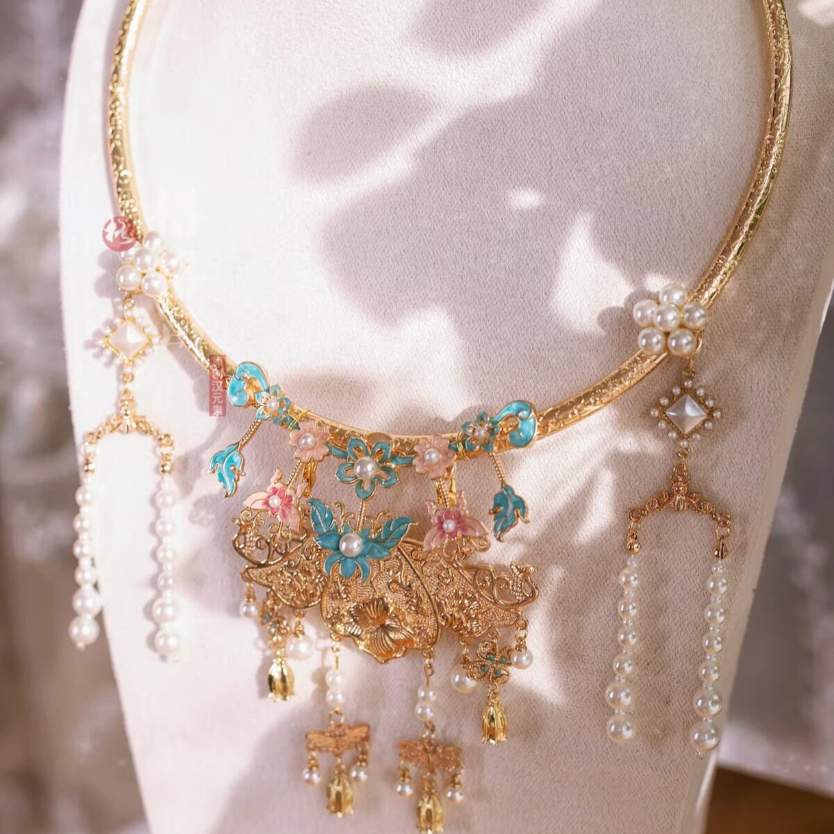 格格间原创【荷花仙】晚明风烧蓝平安锁明制婚服项圈古风项链璎珞 - 格格间 原创汉元素
