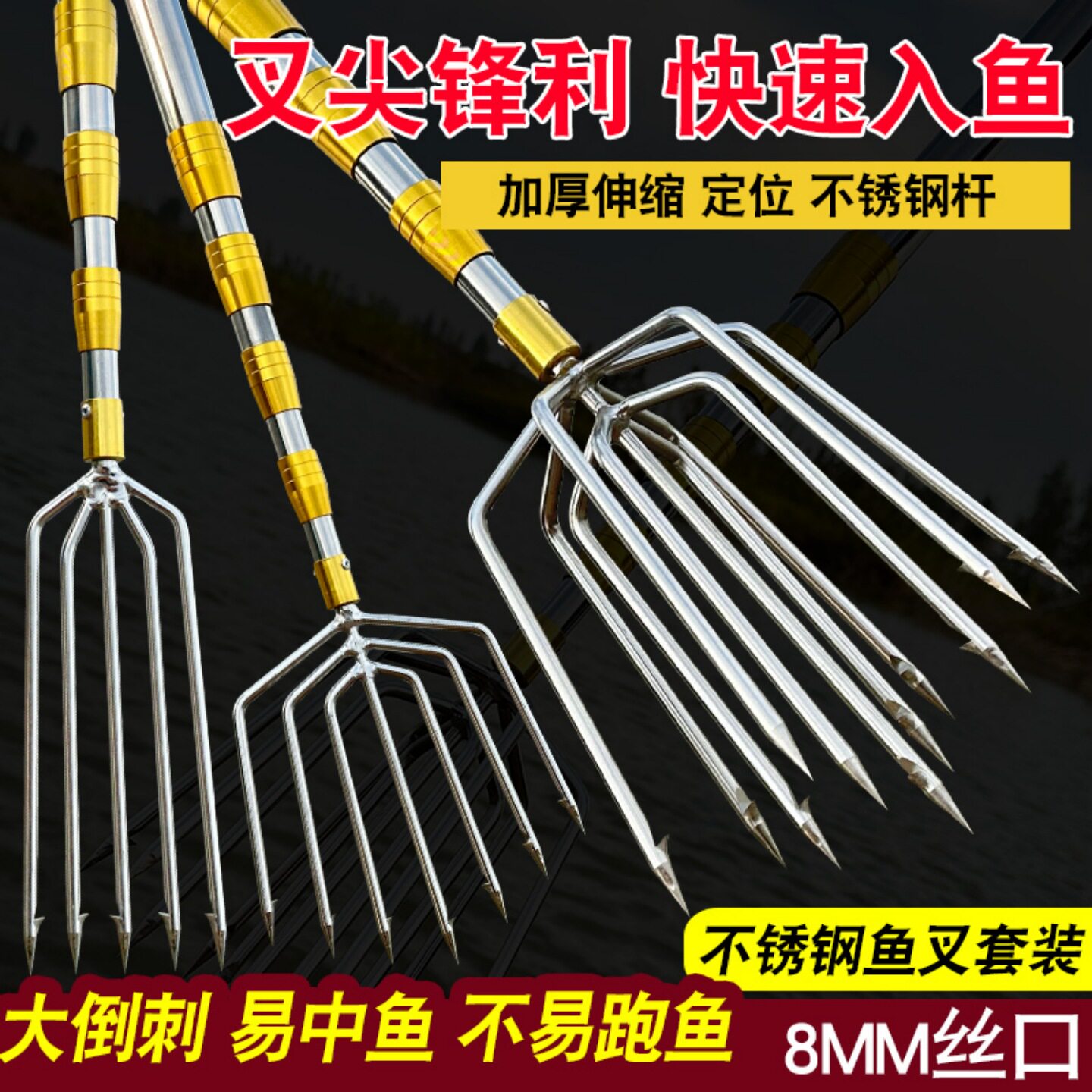 多功能大倒刺老式捕鱼叉不锈钢鱼叉头伸缩杆渔叉鱼插鱼叉子大全 - 水云川户外钓具