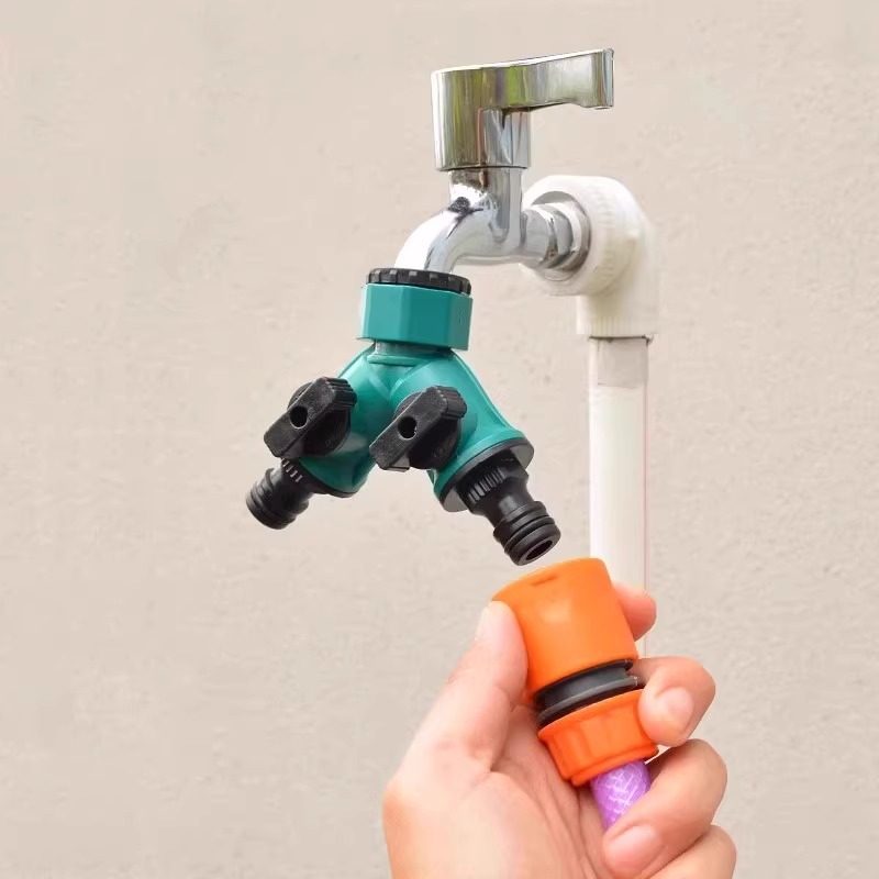 园林花园塑料绿色4分6分内牙奶嘴分流器一分二外丝水龙头分水接头 - 俏俏家居精品日用百货小商品