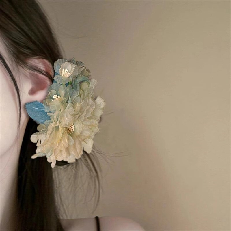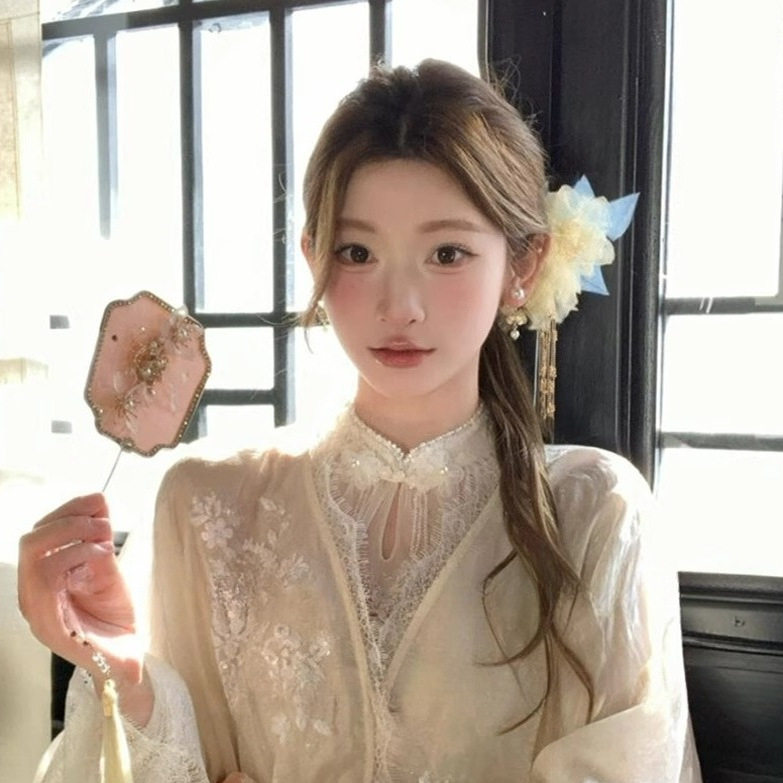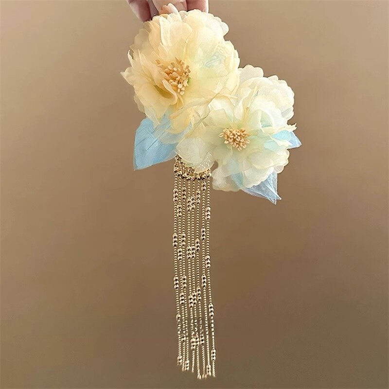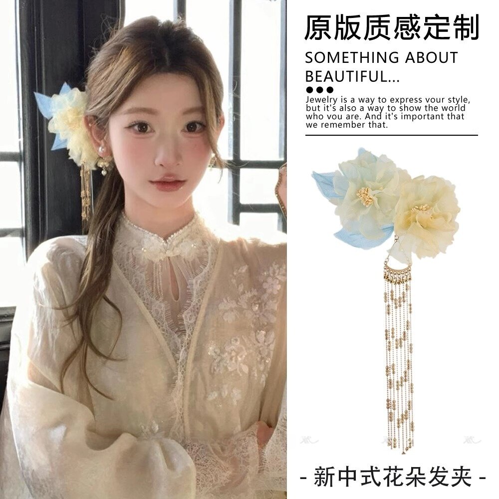 古风绢花流苏发夹新中式烫花侧边簪花头饰高颜值旗袍发饰拍照发卡 - 花间精灵
