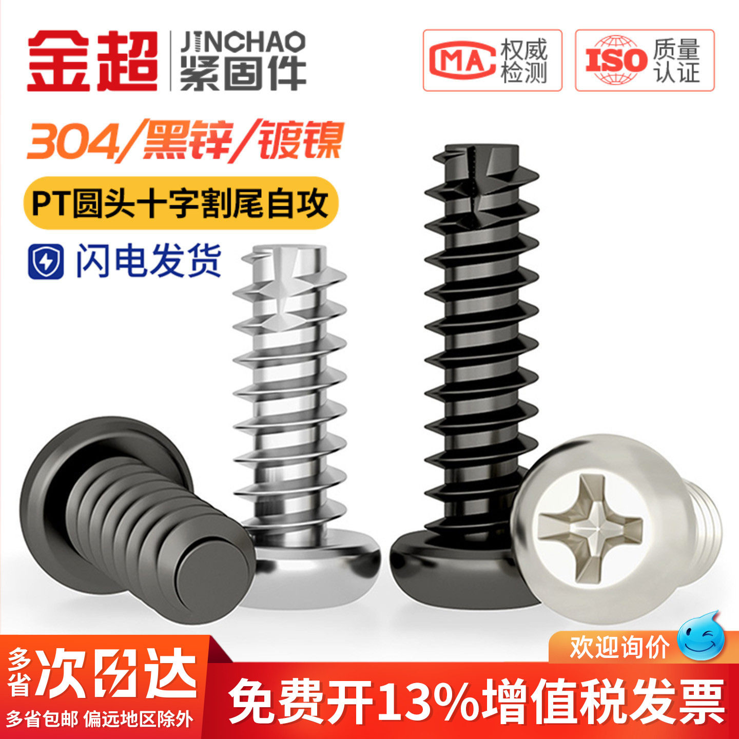 PT 镀镍/黑锌/304不锈钢圆头十字割尾自攻螺丝盘头平尾螺钉M2M3M4 - 金超官方旗舰店