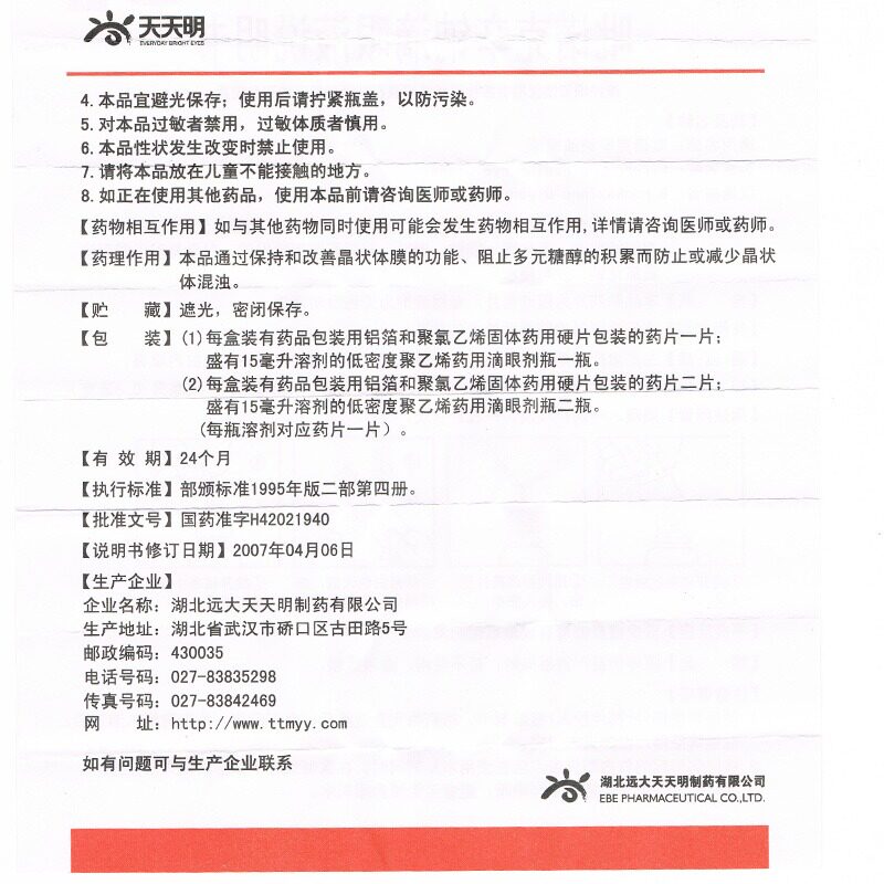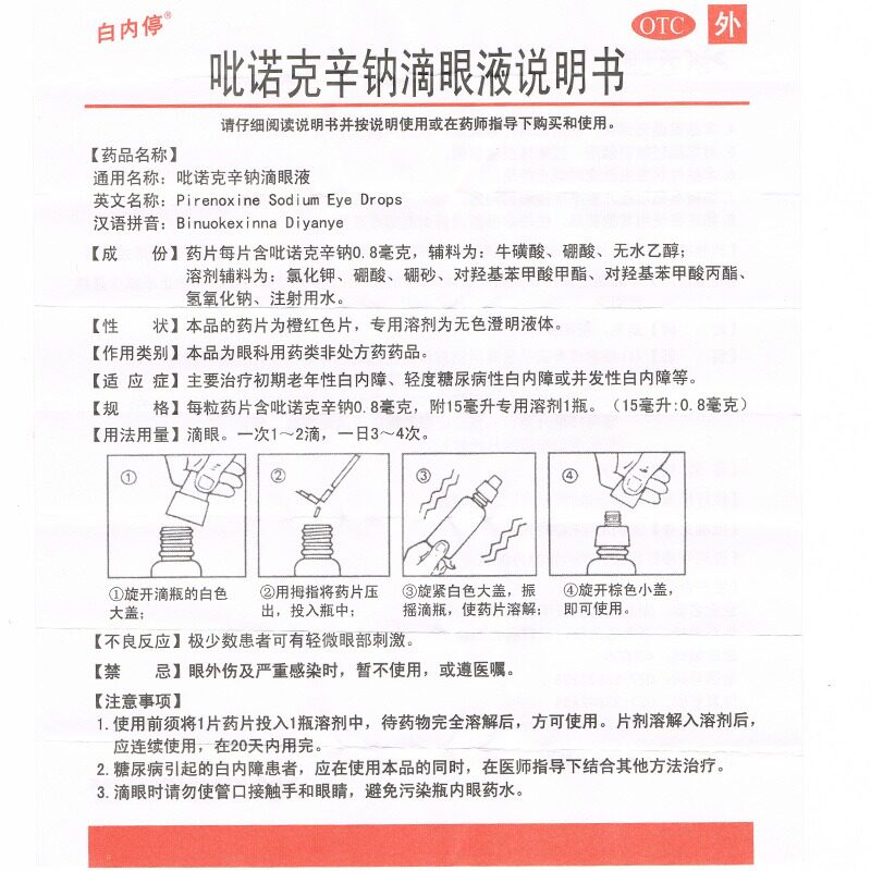 [白内停] 吡诺克辛钠滴眼液 15ml:0.8mg/盒 效期至2026年10月 - 新济神州医药专营店