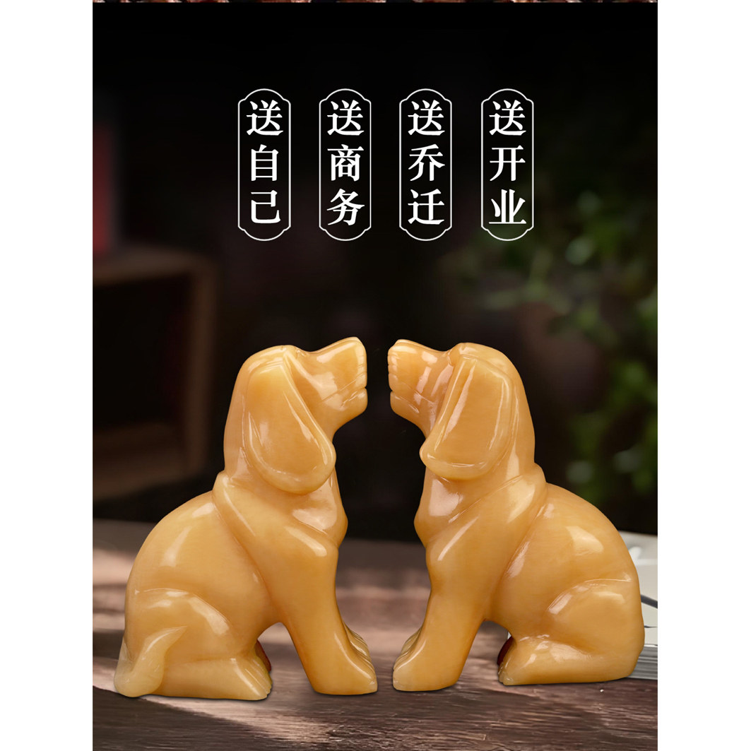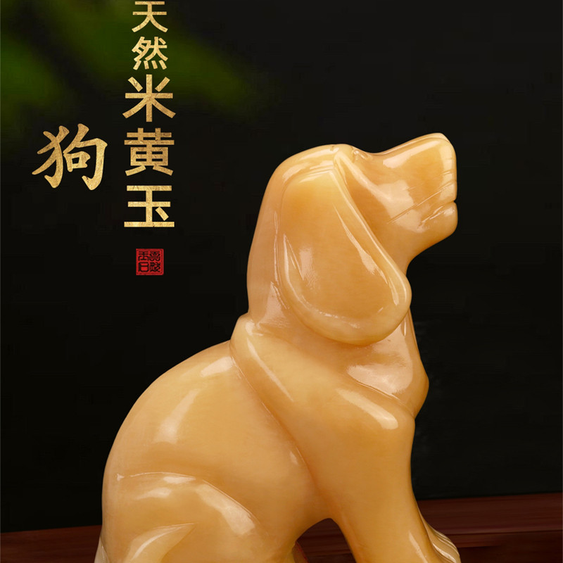 天然黄玉狗十二生肖狗玉石狗玉器狗招财客厅玄关装饰品风水摆件 - 细流雅玉旗舰店