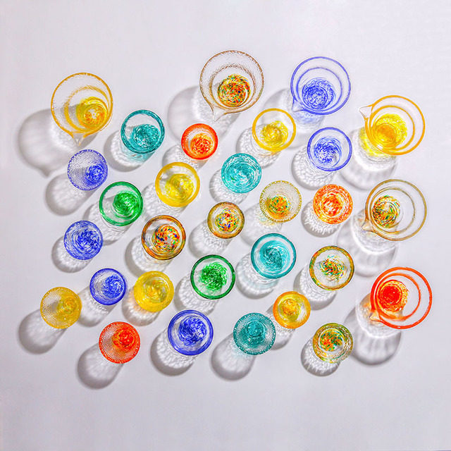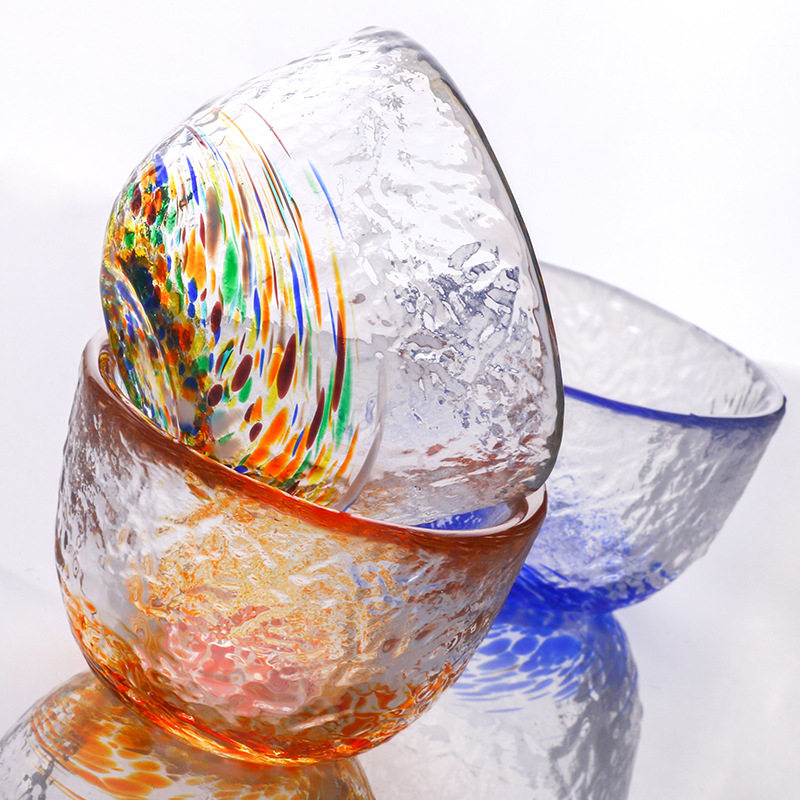 出口日本彩色玻璃杯日料小酒杯锤纹清酒杯少女果酒杯梅酒杯子精致 - 罗曼家居生活馆