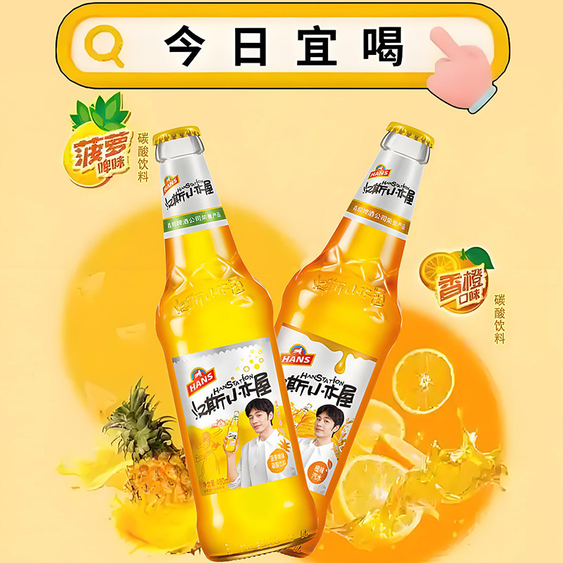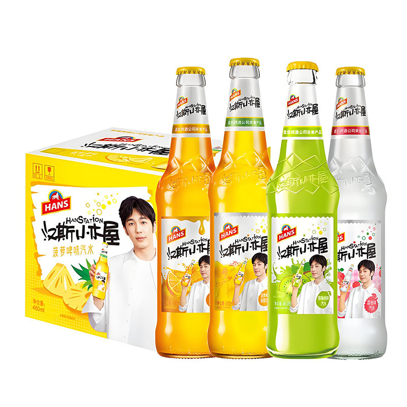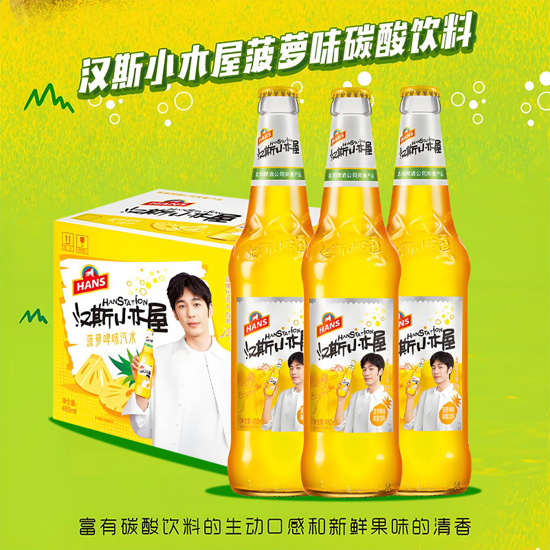 汽水汉斯小木屋啤酒易拉罐装荔枝猕猴桃果汁味菠萝啤碳酸饮料果啤 - 汉中热米皮店