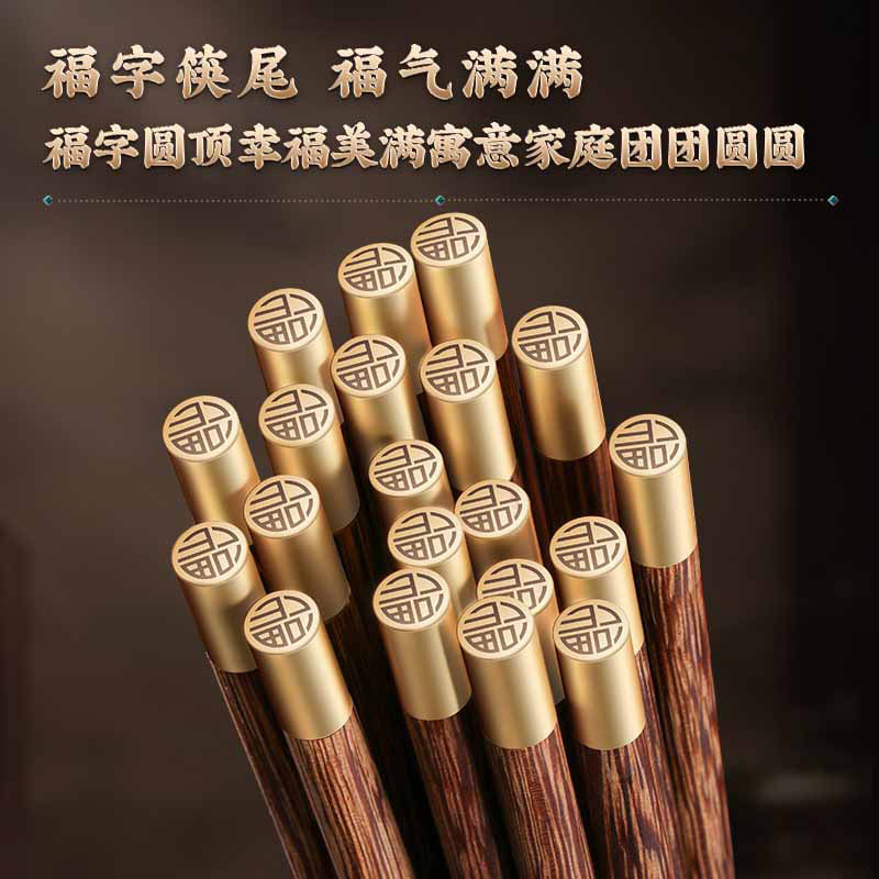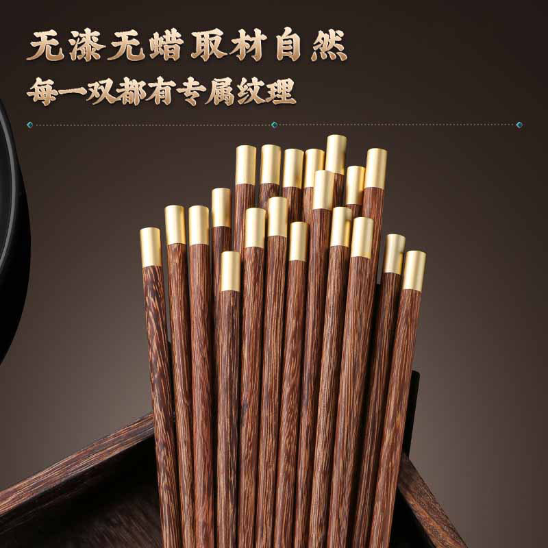 鸡翅木圆福筷子家用高档无漆无蜡抗菌不易发霉木质实木防滑耐高温 - 集美日用家居商城