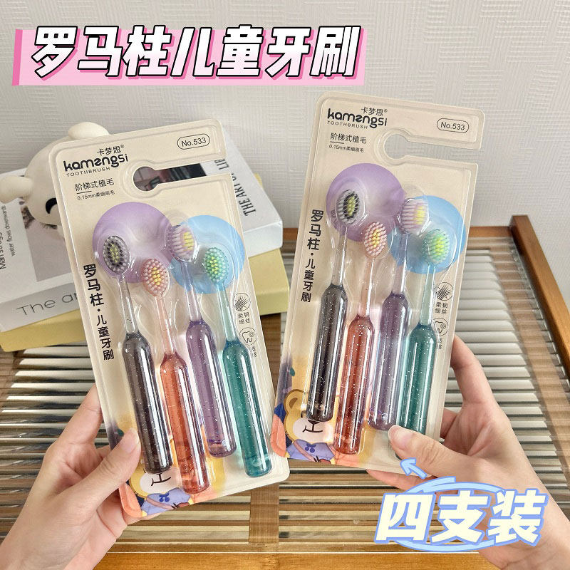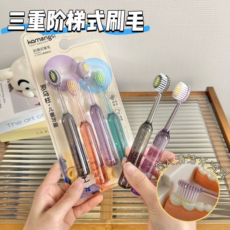 新款高档儿童罗马柱山型凸面牙刷3-12岁洁齿护龈水晶刷牙深层清洁 - 集美日用家居商城