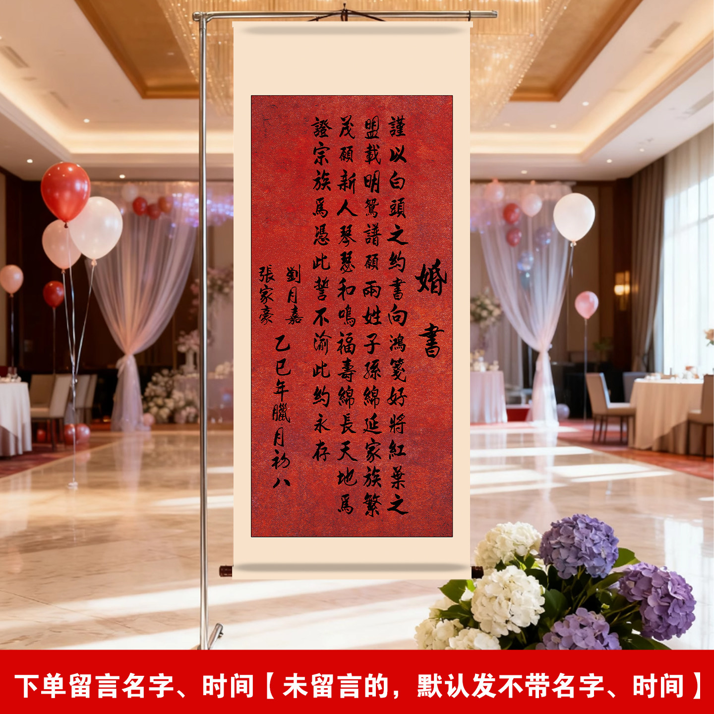 超大订婚书卷轴新中式定亲专用婚书聘书送日子婚宴布置挂画定制 - 年年红婚品一站式购物