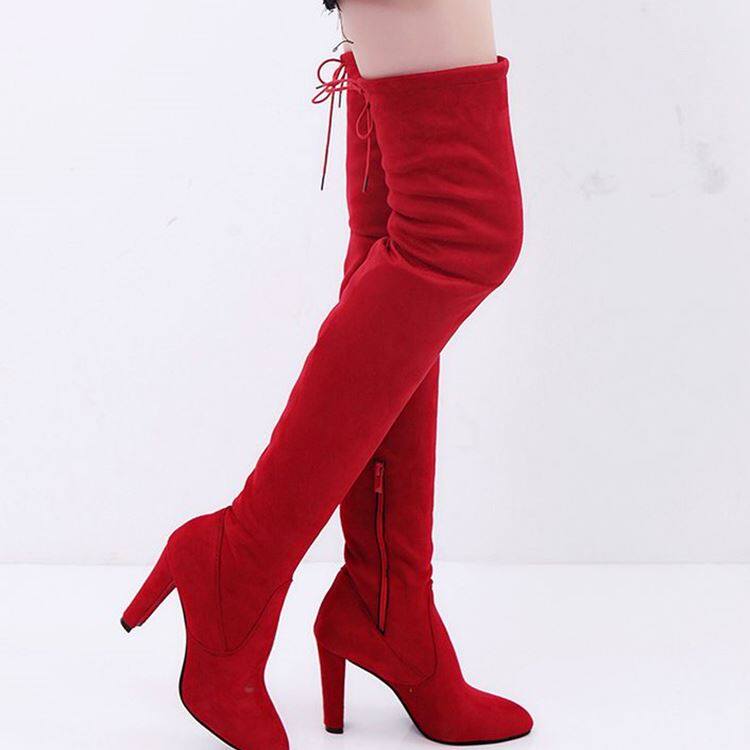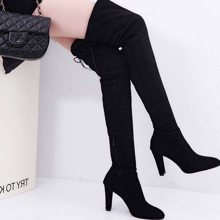 Long boots women shoes外贸欧美尖头粗跟侧拉链过膝靴弹力长靴女 - 千军万马45的小店