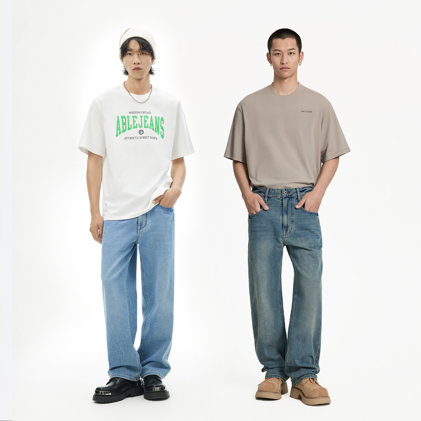 ABLE JEANS【宽松直筒裤】男士美式复古工装宽松阔腿直筒牛仔裤 - ablejeans旗舰店