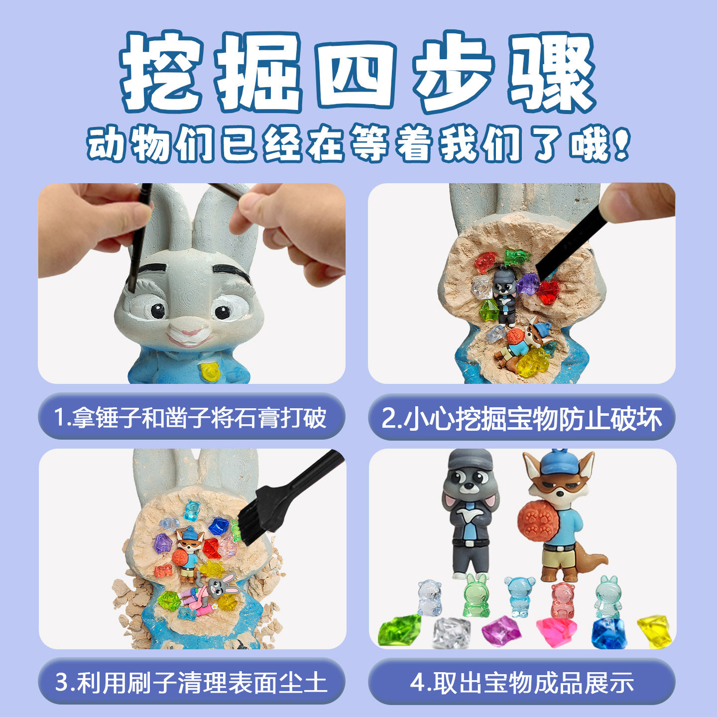 疯狂动物城考古挖掘玩具孩子挖宝石寻宝大石膏挖宝藏盲盒敲打化石 - 又见朝歌