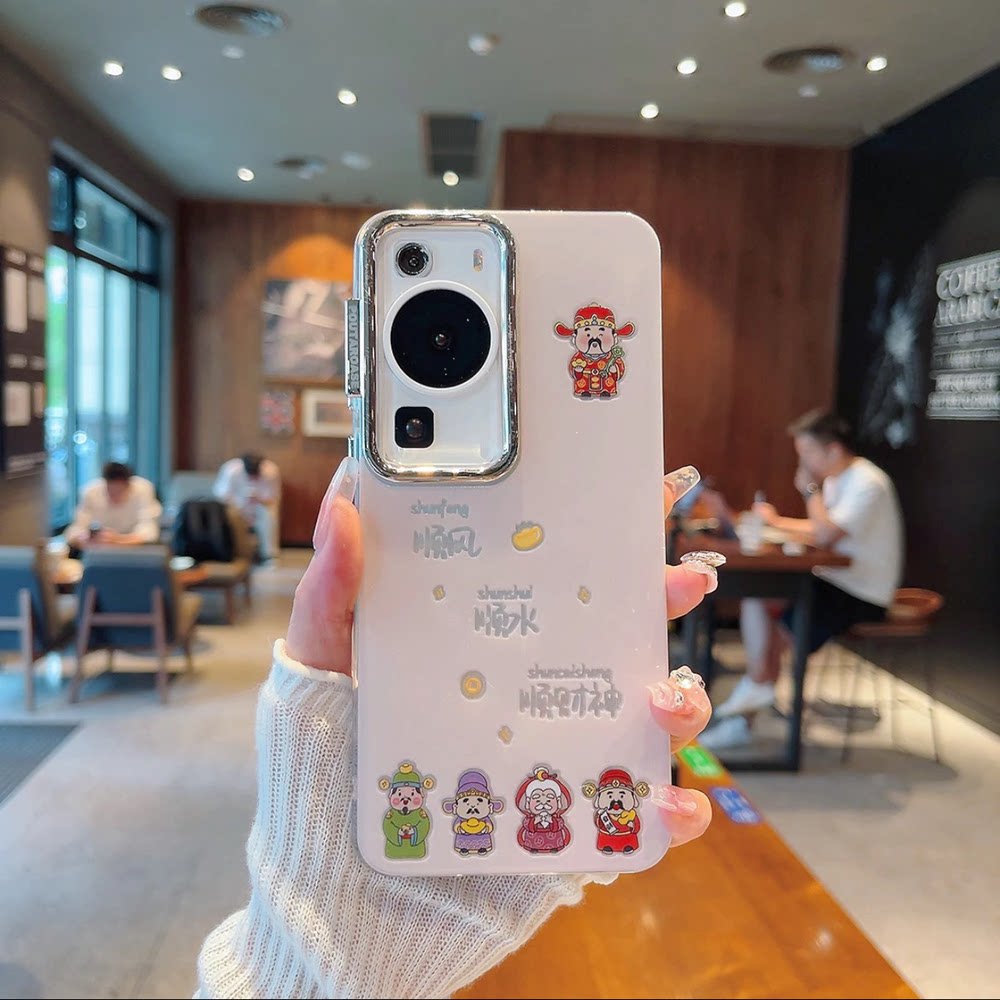 ins风粉色顺风顺水顺财神适用华为p50pro手机壳新款高级感pura70pro网红渐变羽纱纹手机套p60pro防摔保护套女 - 以希优品数码配件