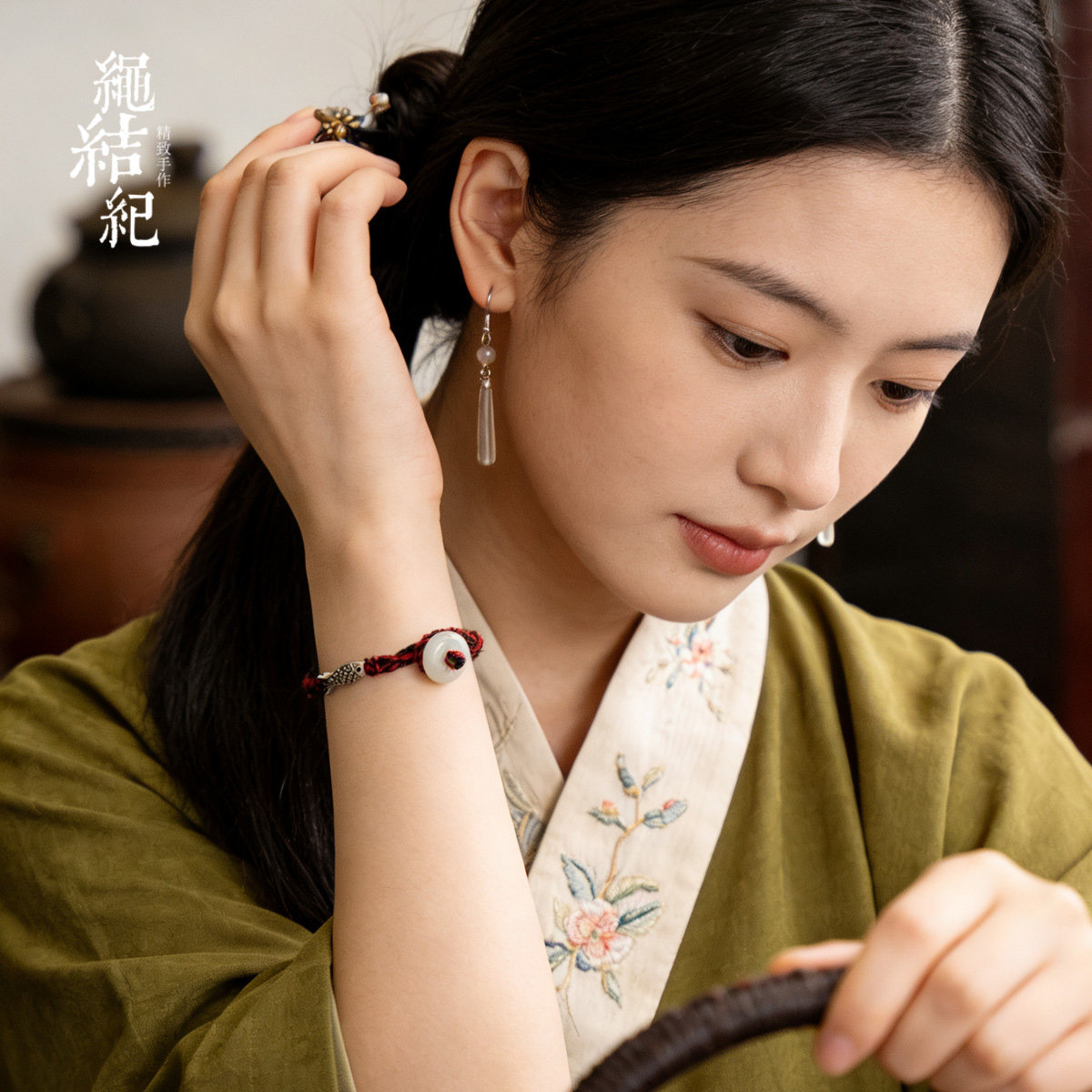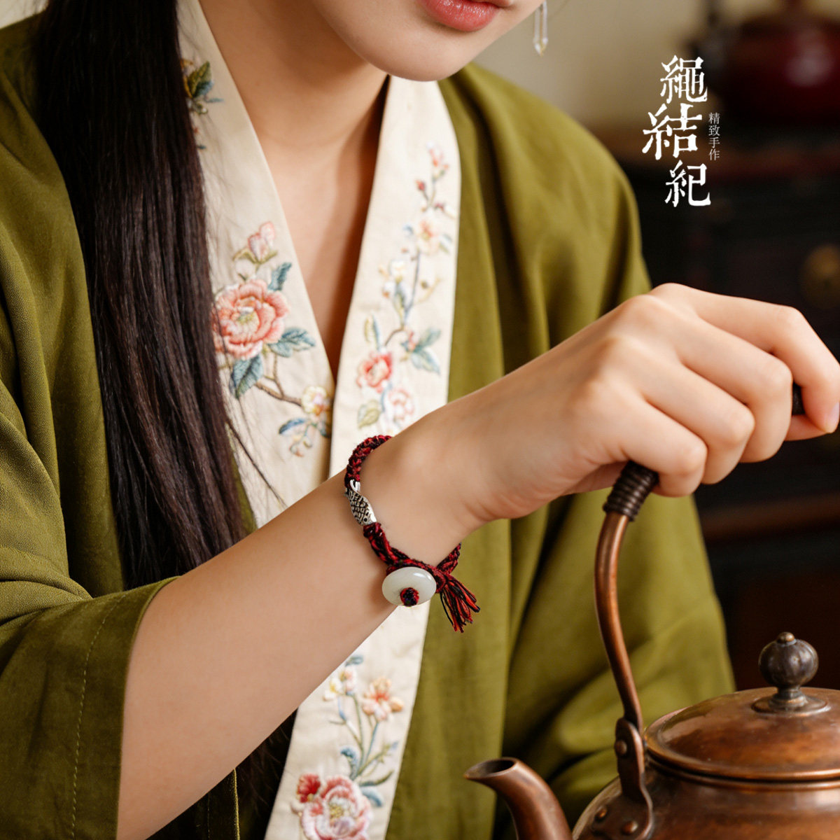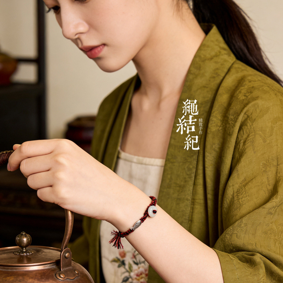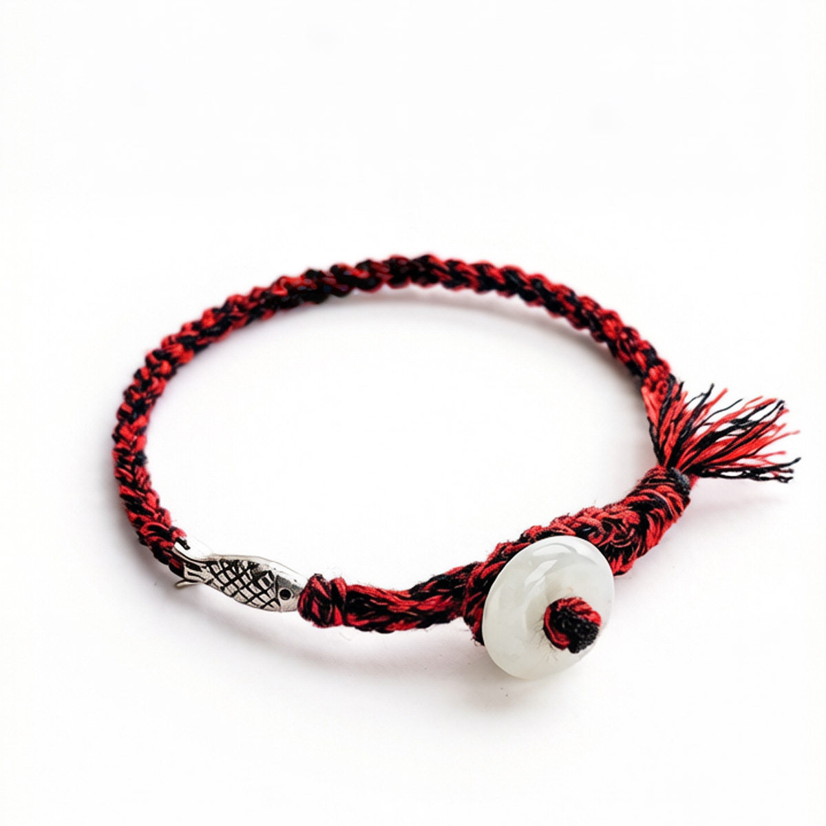 新中式红黑男女手绳翡翠平安扣纯银鱼配饰本命年手绳脚绳送女友 - 绳结纪 19年宝藏绳饰店