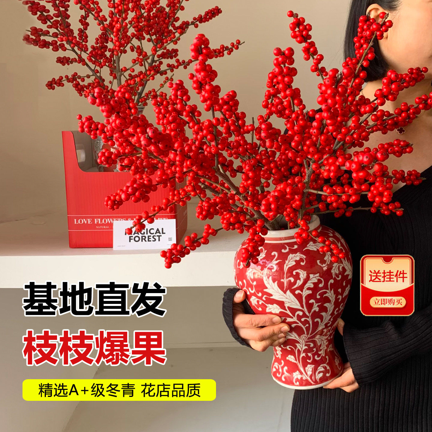 北美冬青红果真花年宵花鲜切花水培花期超长室内观赏四季植物好养 - 葵茵旗舰店