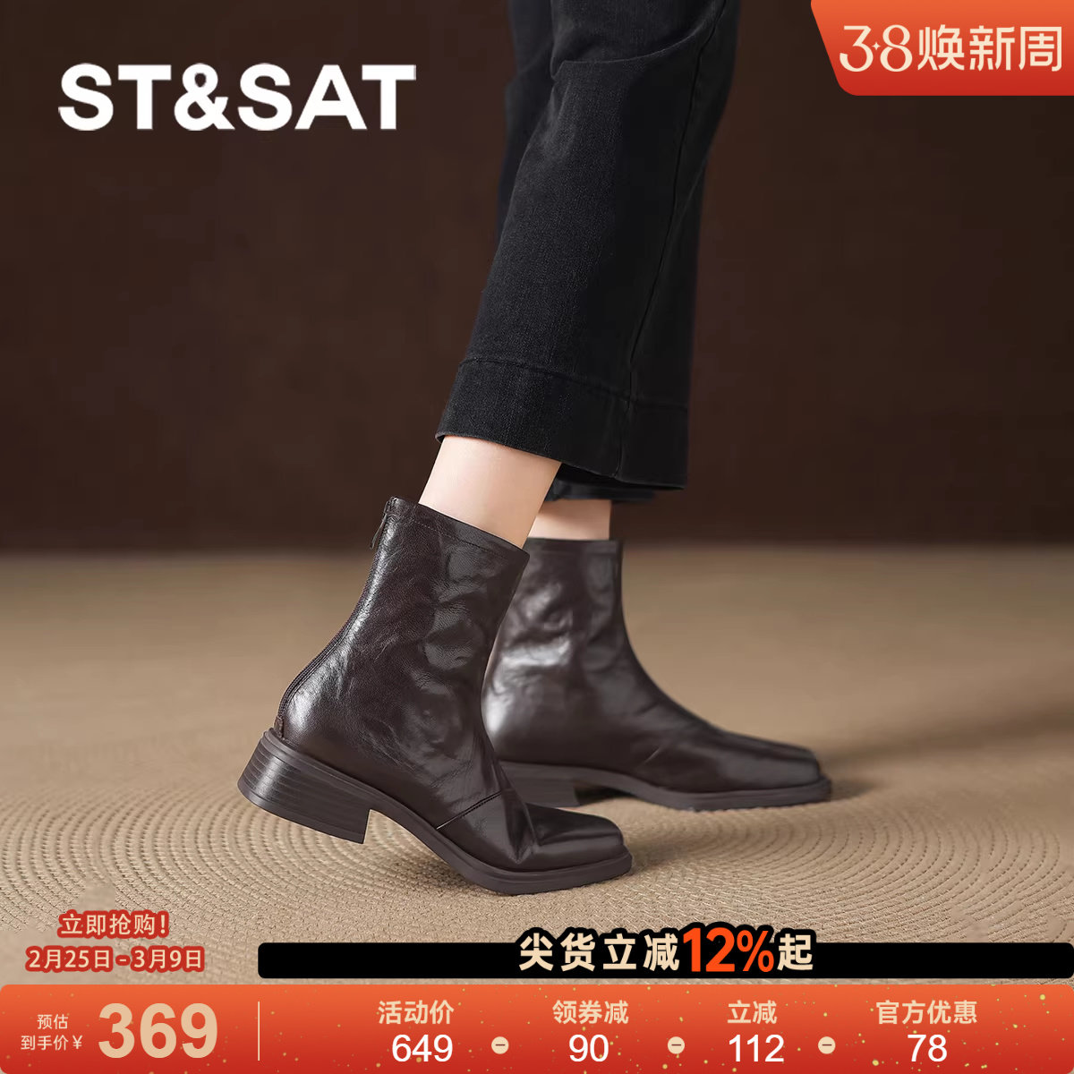 星期六方头短靴女加绒2025新款秋冬季切尔西靴瘦瘦靴子羊皮马丁靴 - 星期六官方旗舰店