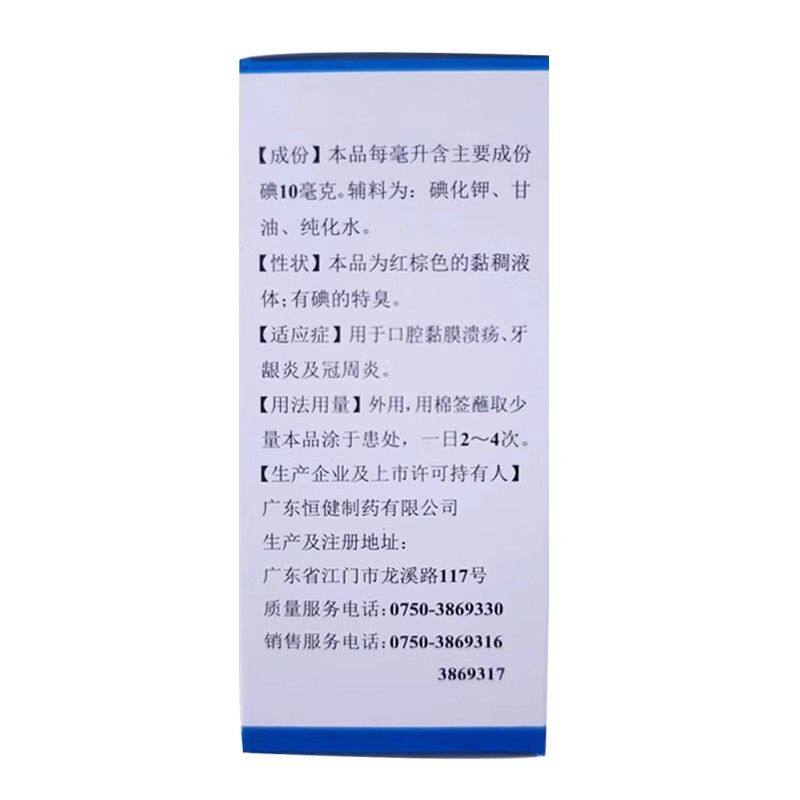 您的位置:光电产业平台  >   >  恒健碘甘油20ml皮肤病用药正品口腔黏膜溃疡牙龈炎及冠周炎