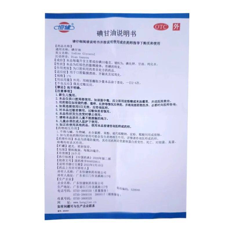 恒健碘甘油20ml皮肤病用药正品口腔黏膜溃疡牙龈炎及冠周炎 - 粤药华医药专营店