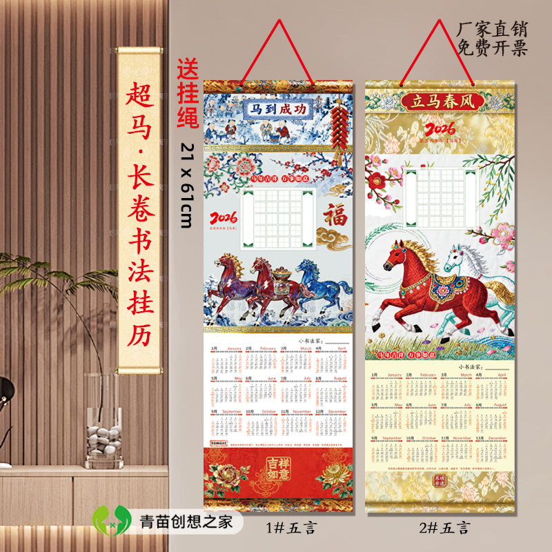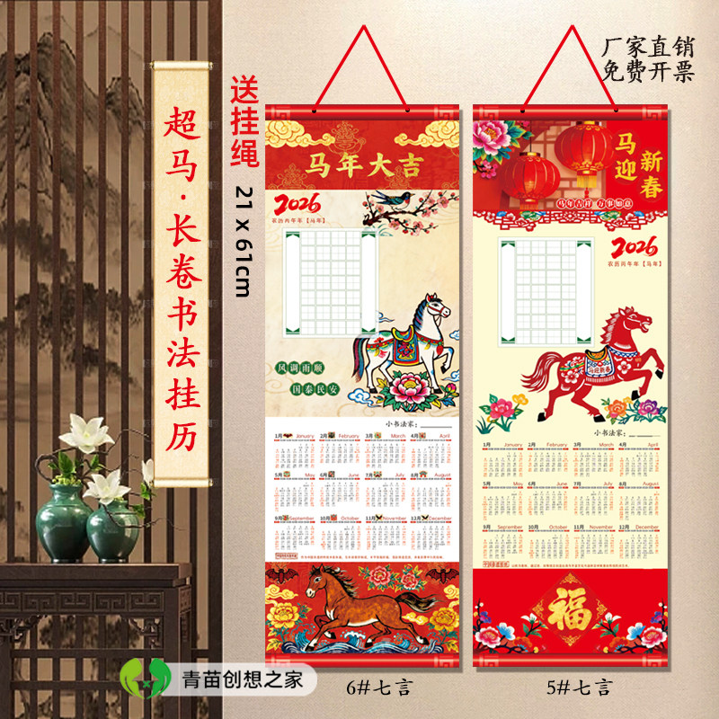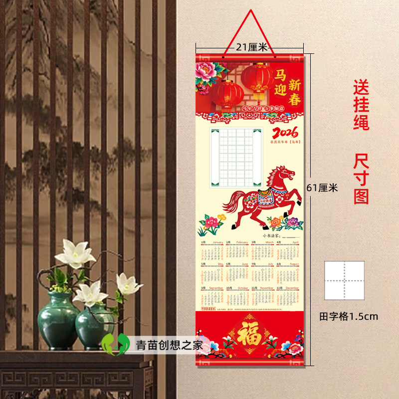 2026马年魅力超马长卷硬笔书法挂历年历田字格五言七言书法练字纸 - 青苗创想之家
