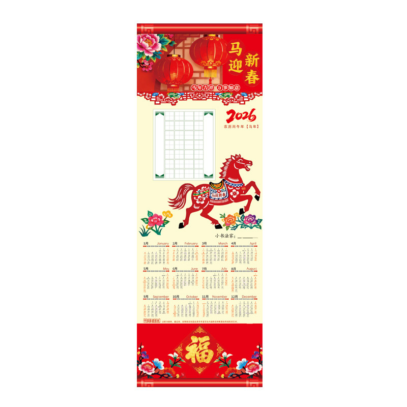 您的位置:光电产业平台  >  安防  >  2026马年魅力超马长卷硬笔书法挂历年历田字格五言七言书法练字纸
