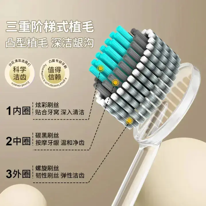 【轻奢山型牙刷】橄榄头螺旋弹力软毛高档护龈成人家用高端Q - 文卡好物