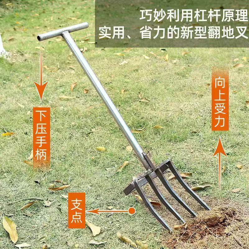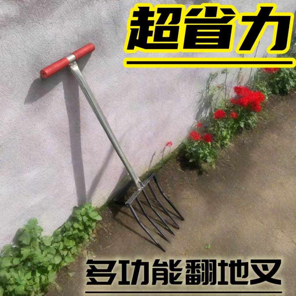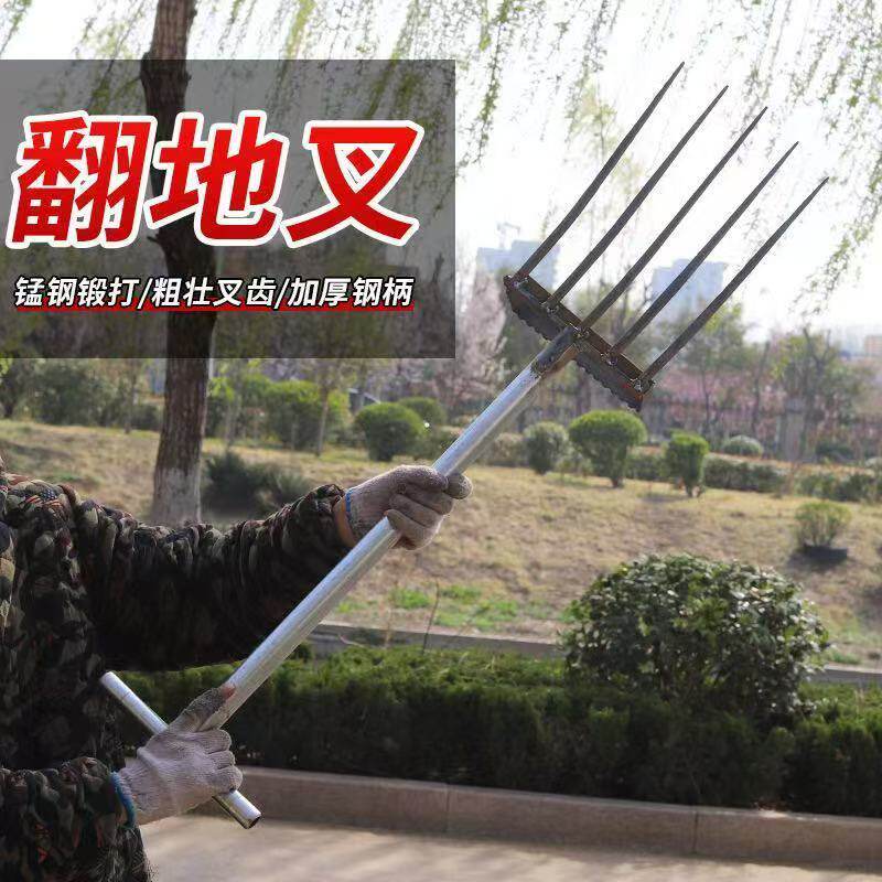新款翻地神器松土翻土农用工具挖地四齿五齿锰钢一体钢叉开荒农具 - 欢喜园林工具店