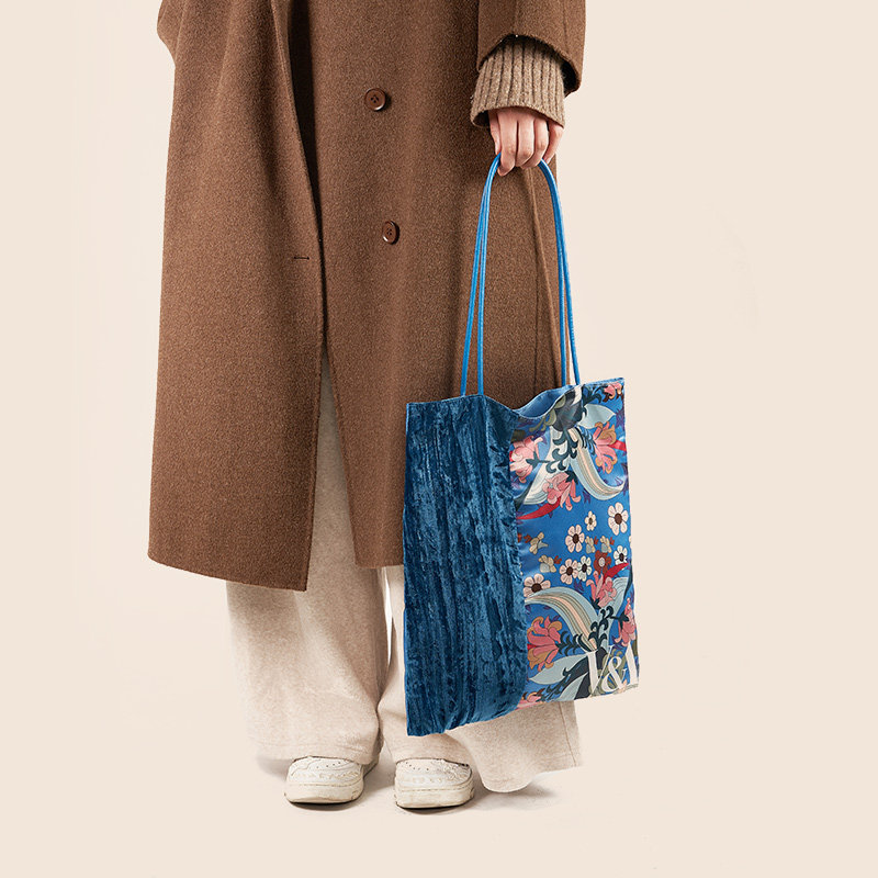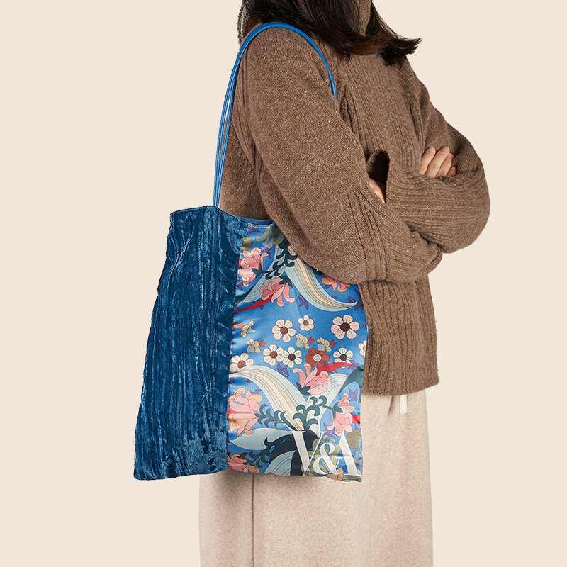 大英博物馆×VA博物馆百合茛苕丝绒拼接帆布包单肩包手拎包通勤 - 大英博物馆文创