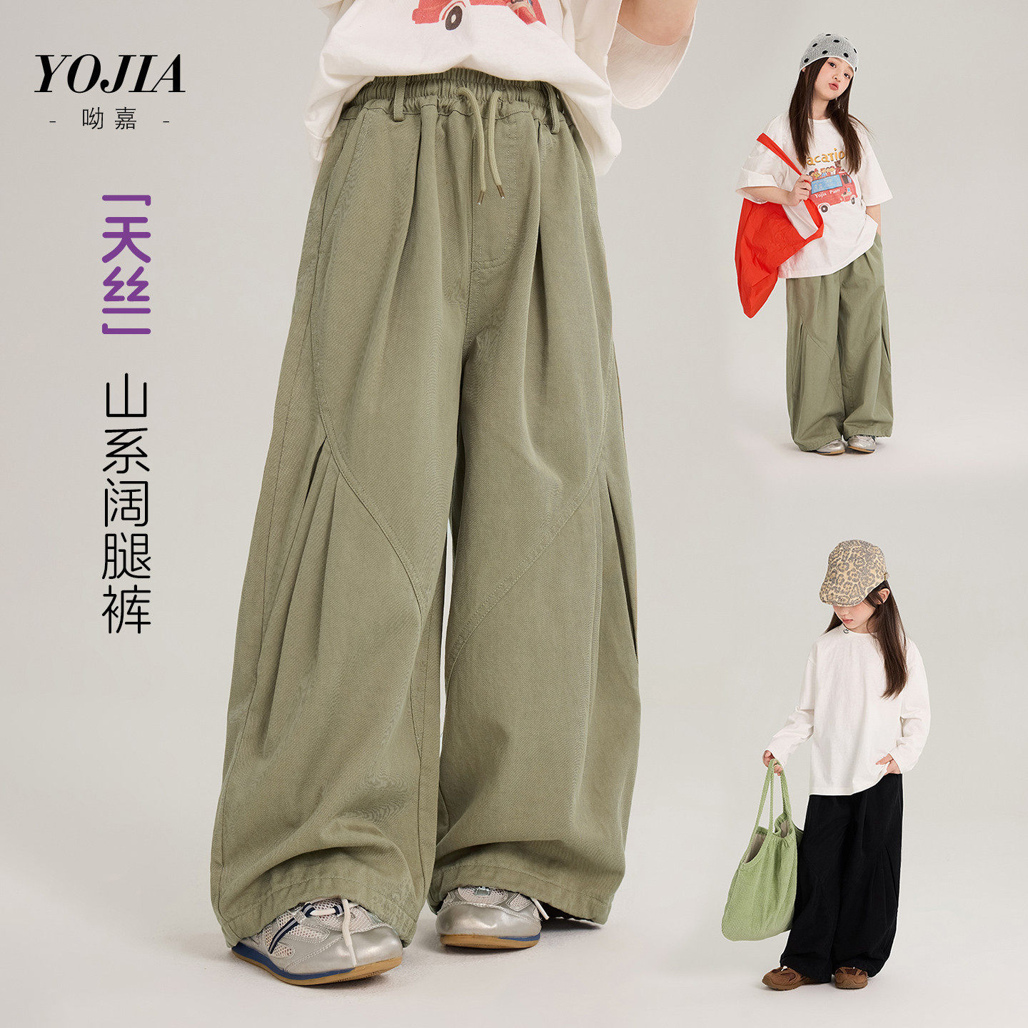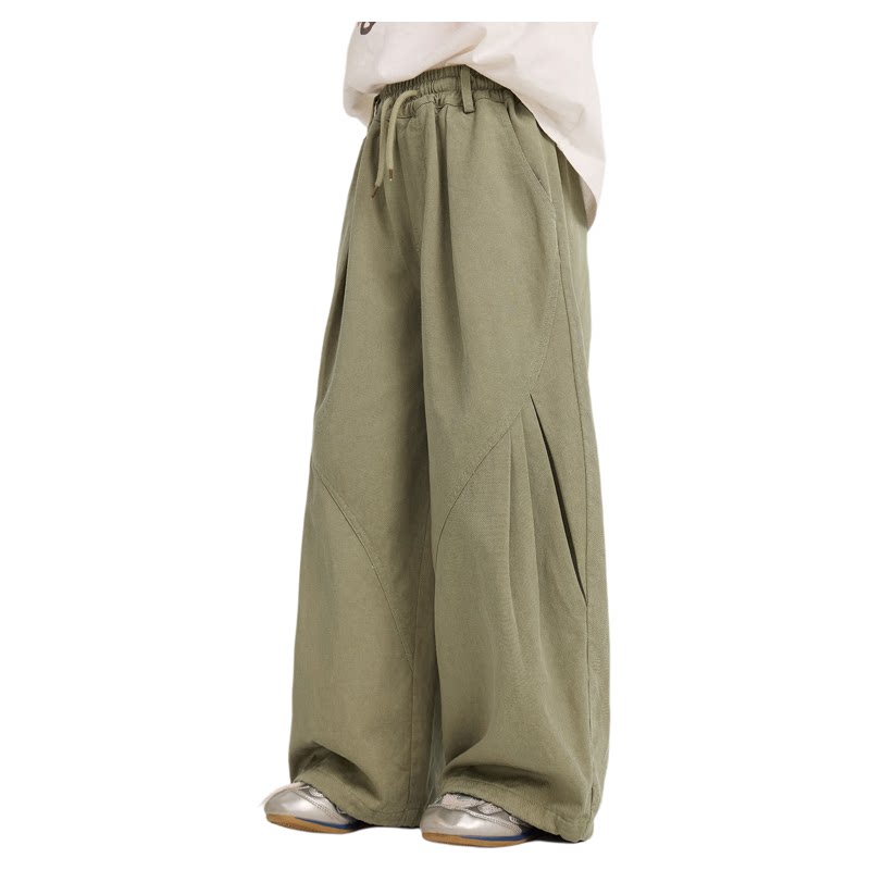 女童阔腿裤子26春装洋气宽松女孩休闲裤薄款儿童百搭长裤军绿黑色 - 优爱女嘉