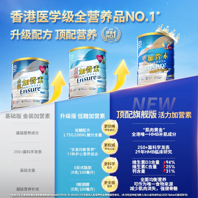 雅培港版低糖金装加营素进口中老年奶粉营养粉香草味850官方正品 - 雅培营养品海外旗舰店