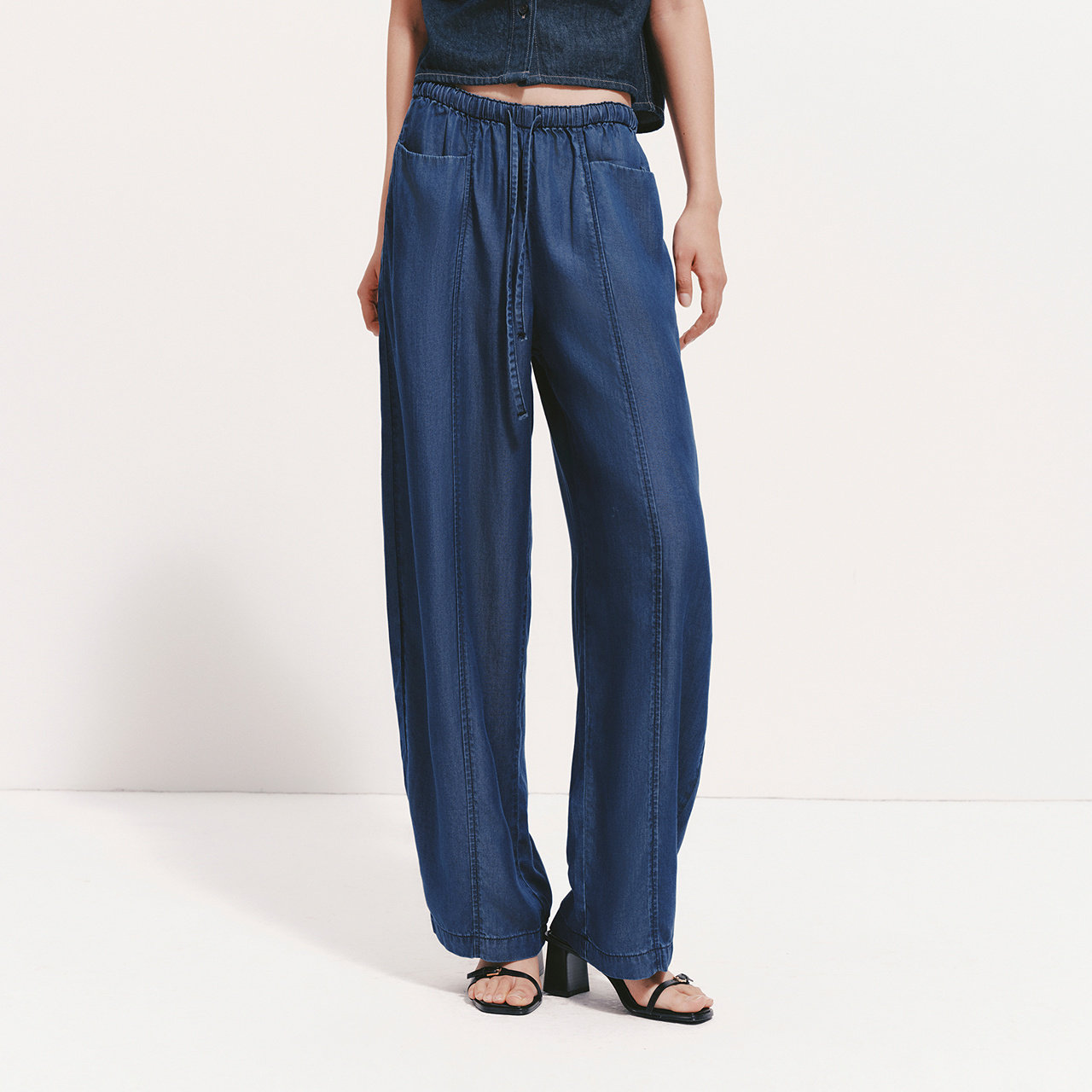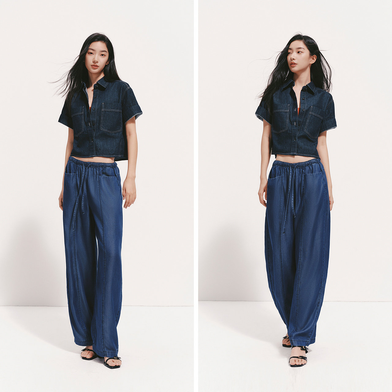 森马牛仔裤女夏莱赛尔分割宽松松紧腰长裤2026新款时尚潮流弯刀裤 - 森马官方旗舰店