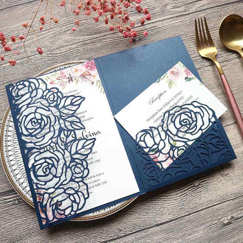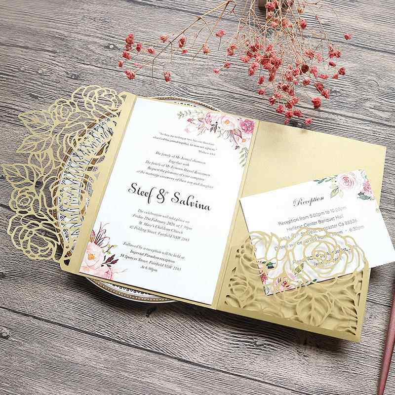 三折婚礼请帖结婚请柬浪漫玫瑰花商务邀请函贺卡内页打印 - 集博旗舰店