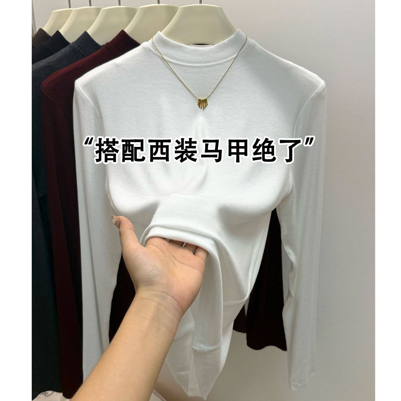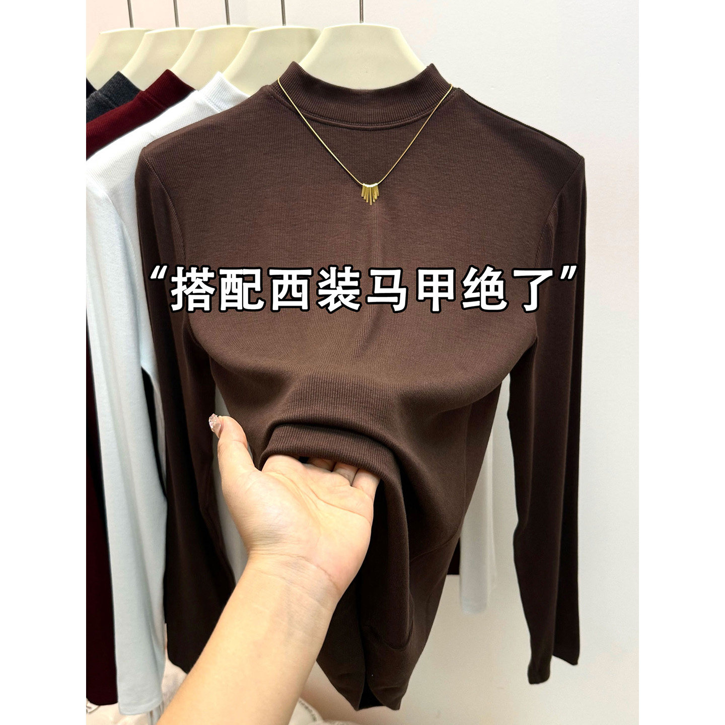 2025碳黑色半高领内搭打底衫女秋冬新款修身显瘦时尚长袖立领上衣 - 汇大方服装实体店