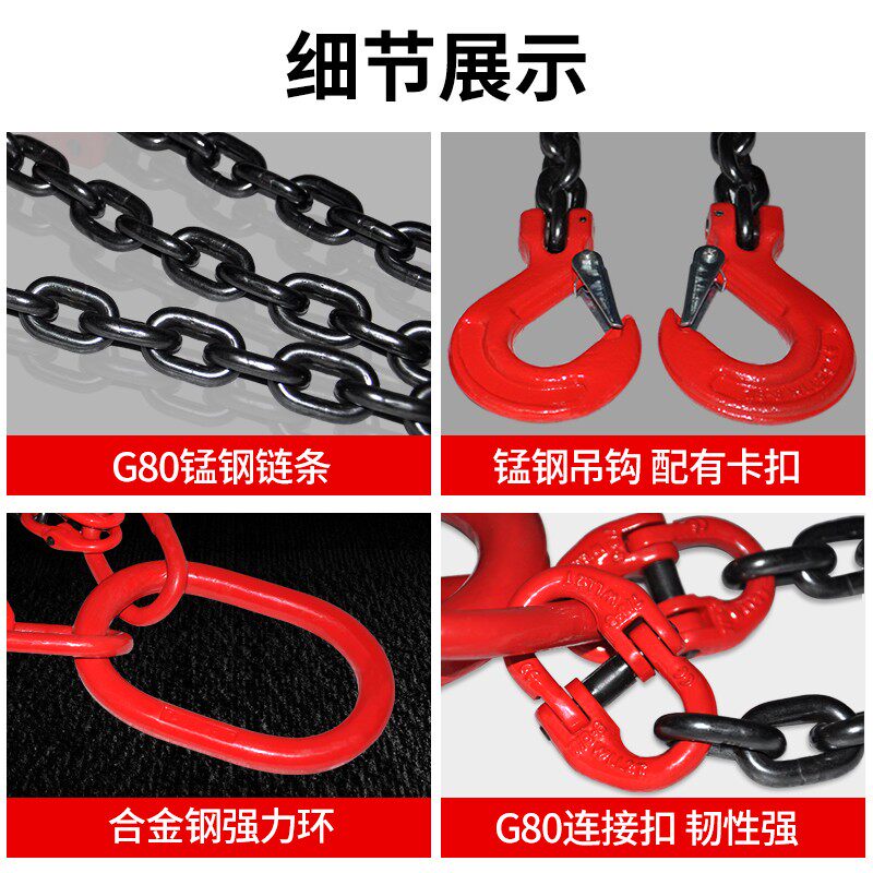 您的位置:光电产业平台  >  应急灯  >  起重链条吊索具G80锰钢链条羊角吊钩行车吊环铁链挂钩双四钩吊具