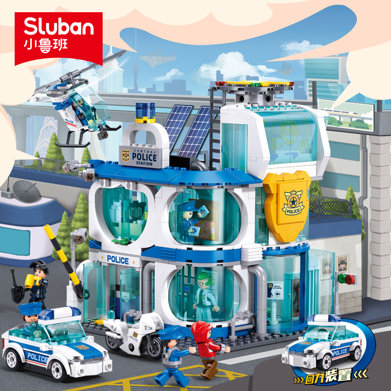 小鲁班城市警察局指挥车拼装积木益智儿童玩具警车男孩生日礼物 - 小鲁班旗舰店