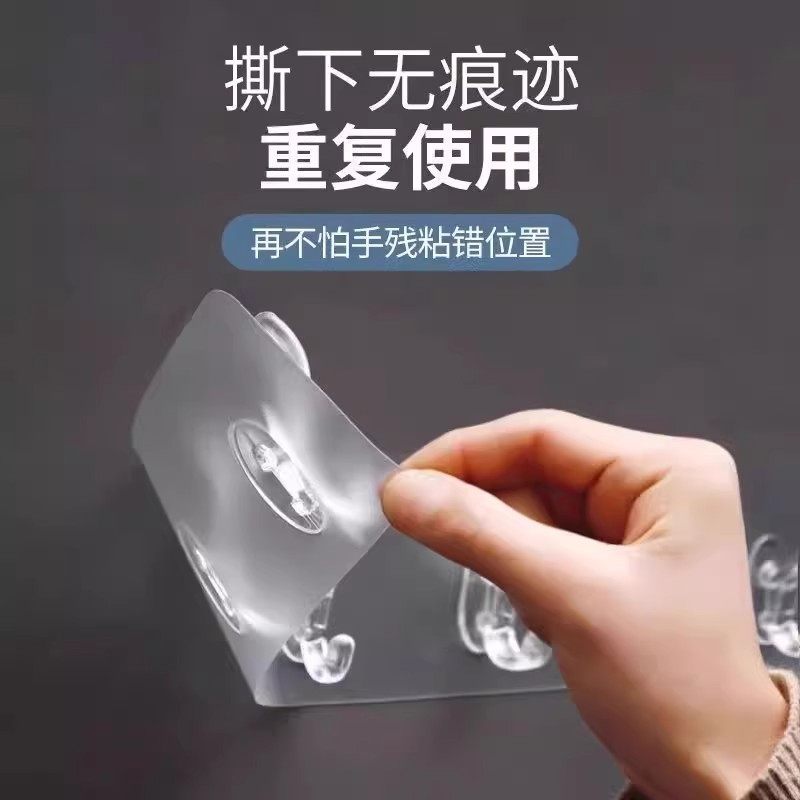 透明六连排挂钩免打孔强力承重黏贴挂钩一排长条无痕不掉落粘钩子 - 福多多日用百货