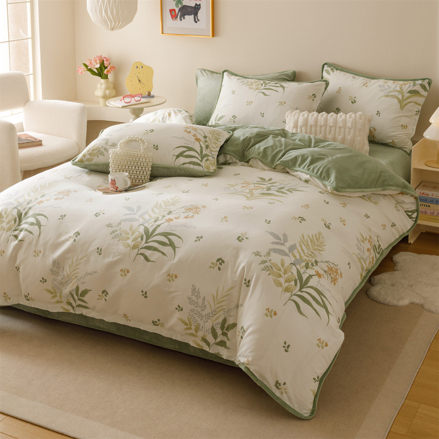 A纯棉B珊瑚绒四件套单面绒一面全棉加绒法兰绒床上牛奶绒被套冬天 - 泽天下旗舰店