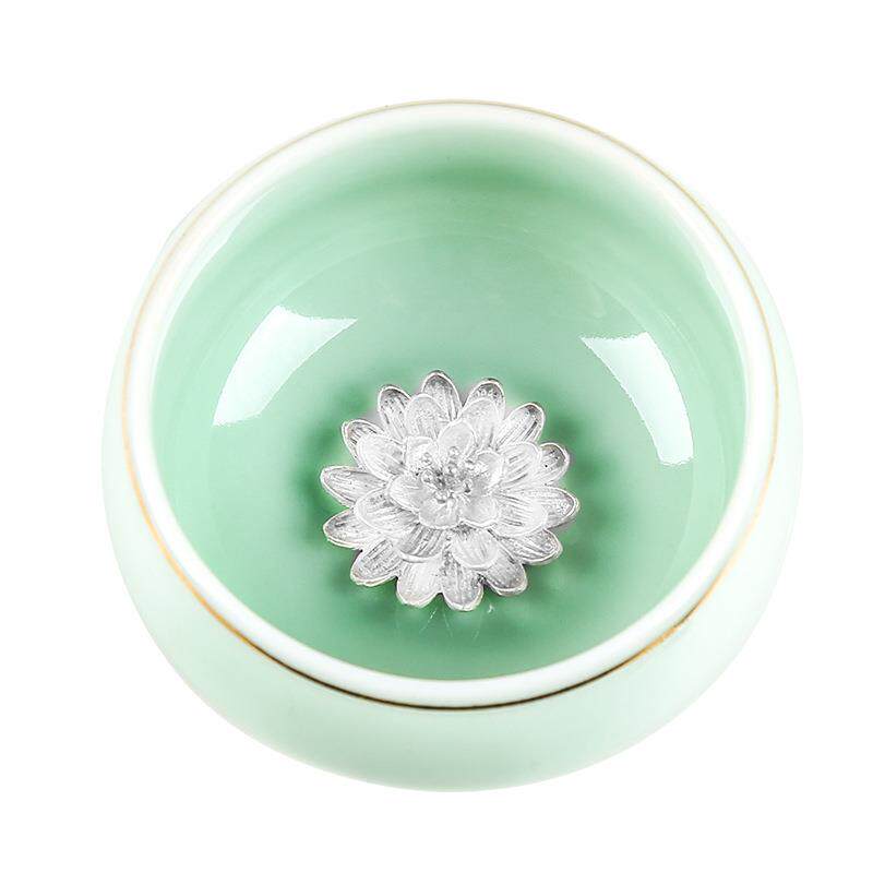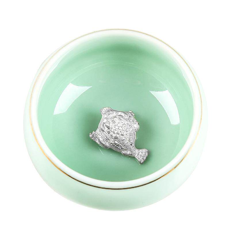 青瓷镶银陶瓷茶杯个人杯主人杯银鱼单杯品茗杯功夫茶具小茶杯茶碗 - 星辰不及眼