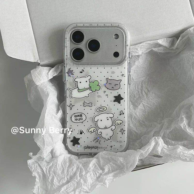 波点四叶草白狗灰猫音符适用苹果17promax手机壳iphone16全包1514 - 毓大大手机壳工作室
